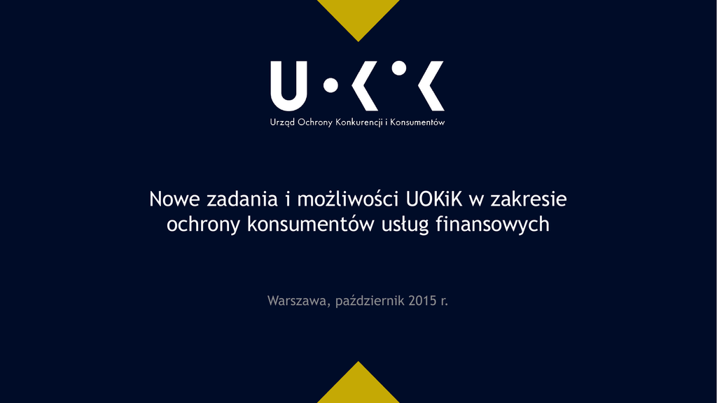 Nowe zadania i możliwości UOKiK w zakresie ochrony konsumentów usług finansowych Warszawa, październik 2015 r. Asumpt do zmian w systemie ochrony konsumentów Nieuczciwe praktyki rynkowe Lawina skarg konsumentów Głos biznesu Nieuczciwe praktyki rynkowe „Ulokowane przez Pana środki co kwartał przyniosą zysk w wysokości 9,6%.” „Zachęcam Państwa do wzięcia kredytu we frankach. Kursy walut są stabilne. Sama ma taki kredyt.” „Może Pani wycofać pieniądze w dowolnym momencie, bez ponoszenia dodatkowych kosztów.” Ze skarg konsumentów… „Pracownica banku zaproponowała mamie założenie lokaty oszczędnościowej – Kapitał na Emeryturę.” „Żaden z banków nie brał pod uwagę możliwości spłaty zobowiązań. Bank udzielając kredytu osobie nie mającej zdolności kredytowej, zachował się nieodpowiedzialnie i nieludzko. Dłużnicze udzieliło kredytów 6 banków na łączną kwotę 50 tyś. zł.” „Ubezpieczenie na życie już mam i nie potrzebowałam drugiego. Nie podejrzewałam, że sprzedażą ubezpieczeń zajmują się teraz banki. Nie było takiej informacji. Jestem na skraju wyczerpania psychicznego”. Co na to biznes? „Trzeba powiedzieć wprost – w wielu przypadkach było to nabijanie klienta w butelkę. Na tych praktykach ucierpiał wizerunek całej branży. Zyskali przede wszystkim pośrednicy, którzy te produkty dystrybuowali.” „My z kolei musimy pracować, by agenci naprawdę zaczęli badać potrzeby klientów, dopasowując do nich produkty, a nie szukali klienta na jeden produkt, który najbardziej lubią sprzedawać.” „Firma powinna dopasować produkt do klienta. Polisolokaty nie są dla osób 70-letnich i jeśli im je wciskano, to mamy do czynienia z nieprawidłowością.” Samoregulacja Około 20% sprzedawców ubezpieczeń oferuje niepotrzebne produkty swoim klientom. * * Badania Polskiej Izby Pośredników Ubezpieczeniowych i Finansowych Tylko 77% agentów określa przyszłe potrzeby swoich klientów, a 63% gromadzi informacje o ich preferencjach.* Rozwiązania wprowadzone na skutek nowelizacji ustawy o ochronie konkurencji i konsumentów Nowa postać praktyki naruszającej zbiorowe interesy konsumentów (nieuczciwa sprzedaż usług finansowych) Decyzja tymczasowa Tajemniczy klient Możliwość wyrażania poglądu istotnego w sprawie Nieodpłatna publikacja ostrzeżeń i komunikatów Wydłużenie terminu przedawnienia Administracyjny tryb kontroli abstrakcyjnej wzorców umów Nowy model kontroli abstrakcyjnej Zawiadomienie (konsument, rzecznik konsumentów, RZF, organizacja konsumencka, zagraniczna organizacja konsumencka) Prezes UOKiK: decyzja administracyjna odnosząca się do wzorców jak i konkretnych umów odwołanie przedsiębiorcy Sąd Okręgowy w Warszawie Sąd Ochrony Konkurencji i Konsumentów apelacja Sąd Apelacyjny w Warszawie 19 Sąd Najwyższy eliminowanie niedozwolonych postanowień z wzorców i umów prawomocna decyzja UOKiK Porównanie modeli kontroli postanowień wzorców Obecnie – model sądowy Po zmianach – model administracyjny Wyrok sądu odnosi się jedynie do wzorca umowy Decyzja administracyjna będzie odnosiła się do wzorca ale również do umów do których wzorzec został inkorporowany Sąd nie ma uprawnień do tego aby usunąć skutki stosowania postanowienia abuzywnego Prezes UOKiK może określić środki usunięcia trwających skutków praktyki Sąd nie ma kompetencji do tego aby postanowienie abuzywne zastąpić innym Istnieje możliwość wypracowania nowego brzmienia postanowienia w postępowaniu przed Prezesem UOKiK – decyzja zobowiązująca Nowelizacja ustawy o kredycie konsumenckim – propozycje UOKiK Reklamy kredytu hipotecznego • Obowiązkowe informacje (art. 7 u k.k.) podaje się konsumentowi w sposób co najmniej tak samo widoczny, czytelny i słyszalny jak dane liczbowe dotyczące kosztu kredytu konsumenckiego. • W reklamach nie zawierających danych liczbowych dotyczących kosztu kredytu konsumenckiego, podaje się w sposób co najmniej tak samo widoczny, czytelny i słyszalny jak pozostałe informacje przekazywane w reklamie, rzeczywistą roczną stopę oprocentowania (RRSO). Implementacja dyrektyw 2014/17/UE – nowe obszary do regulacji Reklamy kredytu hipotecznego Informacje przedkontraktowe Zakaz pobierania innych należności z tytułu opóźnienia niż odsetki za opóźnienie Sieć na rzecz ochrony konsumentów usług finansowych – 4 filary Regulatorzy UOKiK KNF Rzecznik Finansowy System ADR Samoregulacja Dziękuję za uwagę Dorota Karczewska, Wiceprezes UOKiK [email protected]