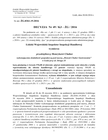 Decyzja nr 49/KJ-ŻG/2016 - Wojewódzki Inspektorat Inspekcji