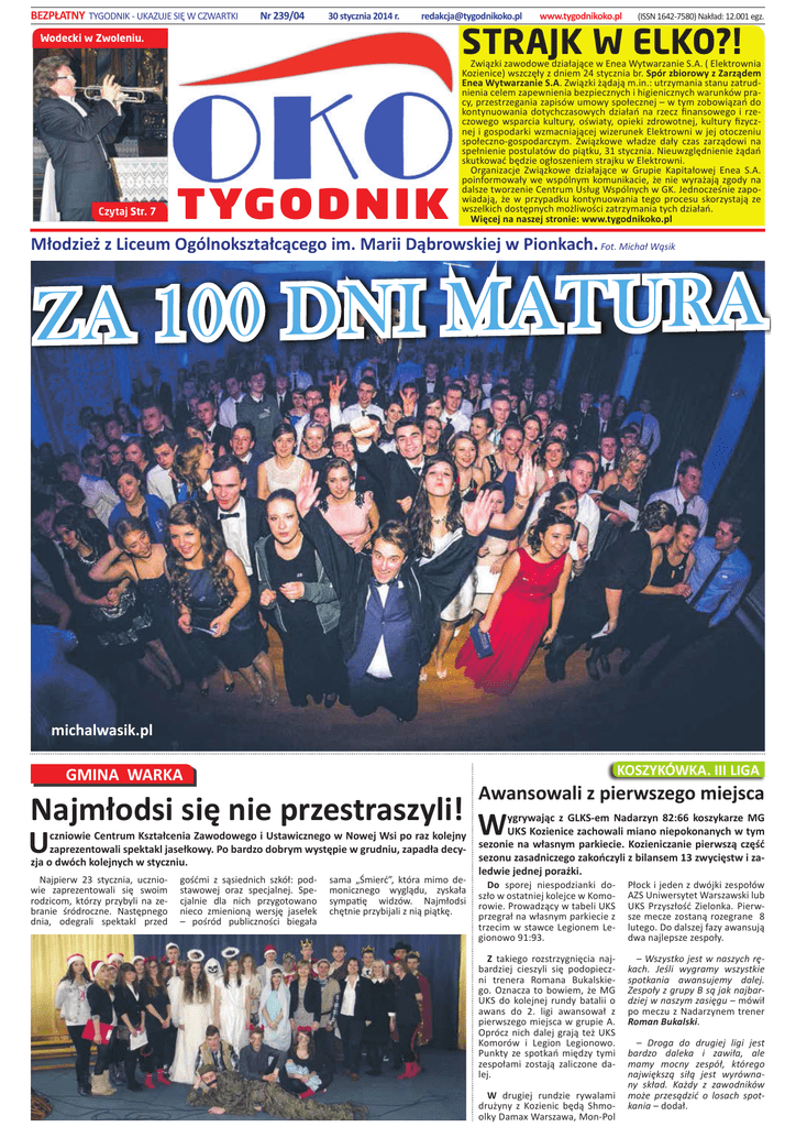 WBdEz dz'KE/<Ͳh<h:^/%ttZd</ EƌϮϯϵͬϬϰϯϬƐƚLJĐnjŶŝĂϮϬϭϰƌ͘ ƌĞĚĂŬĐũĂΛƚLJŐŽĚŶŝŬŽŬŽ͘Ɖů ;/^^EϭϲϰϮͲϳϱϴϬͿEĂŬųĂĚ͗ϭϮ͘ϬϬϭĞŐnj͘ STRAJK W ELKO?! Wodecki w Zwoleniu. Czytaj Str. 7 ǁǁǁ͘ƚLJŐŽĚŶŝŬŽŬŽ͘Ɖů TYGODNIK TYGODNIK ǁŝČnjŬŝnjĂǁŽĚŽǁĞĚnjŝĂųĂũČĐĞǁŶĞĂtLJƚǁĂƌnjĂŶŝĞ^͘͘;ůĞŬƚƌŽǁŶŝĂ <ŽnjŝĞŶŝĐĞͿǁƐnjĐnjħųLJnjĚŶŝĞŵϮϰƐƚLJĐnjŶŝĂďƌ͘^ƉſƌnjďŝŽƌŽǁLJnjĂƌnjČĚĞŵ ŶĞĂtLJƚǁĂƌnjĂŶŝĞ^͘͘ǁŝČnjŬŝǏČĚĂũČŵ͘ŝŶ͗͘ƵƚƌnjLJŵĂŶŝĂƐƚĂŶƵnjĂƚƌƵĚŶŝĞŶŝĂĐĞůĞŵnjĂƉĞǁŶŝĞŶŝĂďĞnjƉŝĞĐnjŶLJĐŚŝŚŝŐŝĞŶŝĐnjŶLJĐŚǁĂƌƵŶŬſǁƉƌĂĐLJ͕ƉƌnjĞƐƚƌnjĞŐĂŶŝĂnjĂƉŝƐſǁƵŵŽǁLJƐƉŽųĞĐnjŶĞũʹǁƚLJŵnjŽďŽǁŝČnjĂŷĚŽ ŬŽŶƚLJŶƵŽǁĂŶŝĂĚŽƚLJĐŚĐnjĂƐŽǁLJĐŚĚnjŝĂųĂŷŶĂƌnjĞĐnjĮŶĂŶƐŽǁĞŐŽŝƌnjĞĐnjŽǁĞŐŽ ǁƐƉĂƌĐŝĂ ŬƵůƚƵƌLJ͕ ŽƑǁŝĂƚLJ͕ ŽƉŝĞŬŝ njĚƌŽǁŽƚŶĞũ͕ ŬƵůƚƵƌLJ ĮnjLJĐnjŶĞũŝŐŽƐƉŽĚĂƌŬŝǁnjŵĂĐŶŝĂũČĐĞũǁŝnjĞƌƵŶĞŬůĞŬƚƌŽǁŶŝǁũĞũŽƚŽĐnjĞŶŝƵ ƐƉŽųĞĐnjŶŽͲŐŽƐƉŽĚĂƌĐnjLJŵ͘ ǁŝČnjŬŽǁĞ ǁųĂĚnjĞ ĚĂųLJ ĐnjĂƐ njĂƌnjČĚŽǁŝ ŶĂ ƐƉĞųŶŝĞŶŝĞƉŽƐƚƵůĂƚſǁĚŽƉŝČƚŬƵ͕ϯϭƐƚLJĐnjŶŝĂ͘EŝĞƵǁnjŐůħĚŶŝĞŶŝĞǏČĚĂŷ ƐŬƵƚŬŽǁĂđďħĚnjŝĞŽŐųŽƐnjĞŶŝĞŵƐƚƌĂũŬƵǁůĞŬƚƌŽǁŶŝ͘ KƌŐĂŶŝnjĂĐũĞ ǁŝČnjŬŽǁĞ ĚnjŝĂųĂũČĐĞ ǁ 'ƌƵƉŝĞ <ĂƉŝƚĂųŽǁĞũ ŶĞĂ ^͘͘ ƉŽŝŶĨŽƌŵŽǁĂųLJǁĞǁƐƉſůŶLJŵŬŽŵƵŶŝŬĂĐŝĞ͕ǏĞŶŝĞǁLJƌĂǏĂũČnjŐŽĚLJŶĂ ĚĂůƐnjĞƚǁŽƌnjĞŶŝĞĞŶƚƌƵŵhƐųƵŐtƐƉſůŶLJĐŚǁ'<͘:ĞĚŶŽĐnjĞƑŶŝĞnjĂƉŽǁŝĂĚĂũČ͕ ǏĞ ǁ ƉƌnjLJƉĂĚŬƵ ŬŽŶƚLJŶƵŽǁĂŶŝĂ ƚĞŐŽ ƉƌŽĐĞƐƵ ƐŬŽƌnjLJƐƚĂũČ njĞ ǁƐnjĞůŬŝĐŚĚŽƐƚħƉŶLJĐŚŵŽǏůŝǁŽƑĐŝnjĂƚƌnjLJŵĂŶŝĂƚLJĐŚĚnjŝĂųĂŷ͘ tŝħĐĞũŶĂŶĂƐnjĞũƐƚƌŽŶŝĞ͗ǁǁǁ͘ƚLJŐŽĚŶŝŬŽŬŽ͘Ɖů DųŽĚnjŝĞǏnj>ŝĐĞƵŵKŐſůŶŽŬƐnjƚĂųĐČĐĞŐŽŝŵ͘DĂƌŝŝČďƌŽǁƐŬŝĞũǁWŝŽŶŬĂĐŚ͘&Žƚ͘DŝĐŚĂųtČƐŝŬ ZA 100 DNI MATURA ŵŝĐŚĂůǁĂƐŝŬ͘Ɖů 'D/EtZ< KOSZYKÓWKA. III LIGA ǁĂŶƐŽǁĂůŝnjƉŝĞƌǁƐnjĞŐŽŵŝĞũƐĐĂ EĂũŵųŽĚƐŝƐŝħŶŝĞƉƌnjĞƐƚƌĂƐnjLJůŝ͊ W U LJŐƌLJǁĂũČĐ nj '><^ͲĞŵ EĂĚĂƌnjLJŶ ϴϮ͗ϲϲ ŬŽƐnjLJŬĂƌnjĞ D' h<^<ŽnjŝĞŶŝĐĞnjĂĐŚŽǁĂůŝŵŝĂŶŽŶŝĞƉŽŬŽŶĂŶLJĐŚǁƚLJŵ ĐnjŶŝŽǁŝĞĞŶƚƌƵŵ<ƐnjƚĂųĐĞŶŝĂĂǁŽĚŽǁĞŐŽŝhƐƚĂǁŝĐnjŶĞŐŽǁEŽǁĞũtƐŝƉŽƌĂnjŬŽůĞũŶLJ njĂƉƌĞnjĞŶƚŽǁĂůŝƐƉĞŬƚĂŬůũĂƐĞųŬŽǁLJ͘WŽďĂƌĚnjŽĚŽďƌLJŵǁLJƐƚħƉŝĞǁŐƌƵĚŶŝƵ͕njĂƉĂĚųĂĚĞĐLJ- ƐĞnjŽŶŝĞ ŶĂ ǁųĂƐŶLJŵ ƉĂƌŬŝĞĐŝĞ͘ <ŽnjŝĞŶŝĐnjĂŶŝĞ ƉŝĞƌǁƐnjČ ĐnjħƑđ ƐĞnjŽŶƵnjĂƐĂĚŶŝĐnjĞŐŽnjĂŬŽŷĐnjLJůŝnjďŝůĂŶƐĞŵϭϯnjǁLJĐŝħƐƚǁŝnjĂnjũĂŽĚǁſĐŚŬŽůĞũŶLJĐŚǁƐƚLJĐnjŶŝƵ͘ ůĞĚǁŝĞũĞĚŶĞũƉŽƌĂǏŬŝ͘ EĂũƉŝĞƌǁ Ϯϯ ƐƚLJĐnjŶŝĂ͕ ƵĐnjŶŝŽǁŝĞ njĂƉƌĞnjĞŶƚŽǁĂůŝ Ɛŝħ ƐǁŽŝŵ ƌŽĚnjŝĐŽŵ͕ ŬƚſƌnjLJ ƉƌnjLJďLJůŝ ŶĂ njĞďƌĂŶŝĞ ƑƌſĚƌŽĐnjŶĞ͘ EĂƐƚħƉŶĞŐŽ ĚŶŝĂ͕ ŽĚĞŐƌĂůŝ ƐƉĞŬƚĂŬů ƉƌnjĞĚ ŐŽƑđŵŝ nj ƐČƐŝĞĚŶŝĐŚ ƐnjŬſų͗ ƉŽĚƐƚĂǁŽǁĞũ ŽƌĂnj ƐƉĞĐũĂůŶĞũ͘ ^ƉĞĐũĂůŶŝĞ ĚůĂ ŶŝĐŚ ƉƌnjLJŐŽƚŽǁĂŶŽ ŶŝĞĐŽ njŵŝĞŶŝŽŶČ ǁĞƌƐũħ ũĂƐĞųĞŬ ʹ ƉŽƑƌſĚ ƉƵďůŝĐnjŶŽƑĐŝ ďŝĞŐĂųĂ ƐĂŵĂ ͣ_ŵŝĞƌđ͕͟ ŬƚſƌĂ ŵŝŵŽ ĚĞŽ ƐƉŽƌĞũ ŶŝĞƐƉŽĚnjŝĂŶŬŝ ĚŽŵŽŶŝĐnjŶĞŐŽ ǁLJŐůČĚƵ͕ njLJƐŬĂųĂ ƐnjųŽǁŽƐƚĂƚŶŝĞũŬŽůĞũĐĞǁ<ŽŵŽƐLJŵƉĂƟħ ǁŝĚnjſǁ͘ EĂũŵųŽĚƐŝ ƌŽǁŝĞ͘WƌŽǁĂĚnjČĐLJǁƚĂďĞůŝh<^ ĐŚħƚŶŝĞƉƌnjLJďŝũĂůŝnjŶŝČƉŝČƚŬħ͘ ƉƌnjĞŐƌĂųŶĂǁųĂƐŶLJŵƉĂƌŬŝĞĐŝĞnj ƚƌnjĞĐŝŵ ǁ ƐƚĂǁĐĞ >ĞŐŝŽŶĞŵ >ĞŐŝŽŶŽǁŽϵϭ͗ϵϯ͘ Z ƚĂŬŝĞŐŽ ƌŽnjƐƚƌnjLJŐŶŝħĐŝĂ ŶĂũďĂƌĚnjŝĞũ ĐŝĞƐnjLJůŝ Ɛŝħ ƉŽĚŽƉŝĞĐnjŶŝ ƚƌĞŶĞƌĂ ZŽŵĂŶĂ ƵŬĂůƐŬŝĞŐŽ͘ KnjŶĂĐnjĂ ƚŽ ďŽǁŝĞŵ͕ ǏĞ D' h<^ ĚŽ ŬŽůĞũŶĞũ ƌƵŶĚLJ ďĂƚĂůŝŝ Ž ĂǁĂŶƐ ĚŽ Ϯ͘ ůŝŐŝ ĂǁĂŶƐŽǁĂų nj ƉŝĞƌǁƐnjĞŐŽŵŝĞũƐĐĂǁŐƌƵƉŝĞ͘ KƉƌſĐnj ŶŝĐŚ ĚĂůĞũ ŐƌĂũČ ƚĞǏ h<^ <ŽŵŽƌſǁ ŝ >ĞŐŝŽŶ >ĞŐŝŽŶŽǁŽ͘ WƵŶŬƚLJ njĞ ƐƉŽƚŬĂŷ ŵŝħĚnjLJ ƚLJŵŝ njĞƐƉŽųĂŵŝ njŽƐƚĂũČ njĂůŝĐnjŽŶĞ ĚĂůĞũ͘ WųŽĐŬŝũĞĚĞŶnjĚǁſũŬŝnjĞƐƉŽųſǁ ^hŶŝǁĞƌƐLJƚĞƚtĂƌƐnjĂǁƐŬŝůƵď h<^ WƌnjLJƐnjųŽƑđ ŝĞůŽŶŬĂ͘ WŝĞƌǁƐnjĞŵĞĐnjĞnjŽƐƚĂŶČƌŽnjĞŐƌĂŶĞϴ ůƵƚĞŐŽ͘ŽĚĂůƐnjĞũĨĂnjLJĂǁĂŶƐƵũČ ĚǁĂŶĂũůĞƉƐnjĞnjĞƐƉŽųLJ͘ ʹtƐnjLJƐƚŬŽũĞƐƚǁŶĂƐnjLJĐŚƌħŬĂĐŚ͘ :ĞƑůŝ ǁLJŐƌĂŵLJ ǁƐnjLJƐƚŬŝĞ ƐƉŽƚŬĂŶŝĂ ĂǁĂŶƐƵũĞŵLJ ĚĂůĞũ͘ ĞƐƉŽųLJnjŐƌƵƉLJƐČũĂŬŶĂũďĂƌĚnjŝĞũǁŶĂƐnjLJŵnjĂƐŝħŐƵʹŵſǁŝų ƉŽŵĞĐnjƵnjEĂĚĂƌnjLJŶĞŵƚƌĞŶĞƌ Roman Bukalski͘ ʹ ƌŽŐĂ ĚŽ ĚƌƵŐŝĞũ ůŝŐŝ ũĞƐƚ ďĂƌĚnjŽ ĚĂůĞŬĂ ŝ njĂǁŝųĂ͕ ĂůĞ ŵĂŵLJ ŵŽĐŶLJ njĞƐƉſų͕ ŬƚſƌĞŐŽ ŶĂũǁŝħŬƐnjČ ƐŝųČ ũĞƐƚ ǁLJƌſǁŶĂŶLJ ƐŬųĂĚ͘ <ĂǏĚLJ nj njĂǁŽĚŶŝŬſǁ W ĚƌƵŐŝĞũ ƌƵŶĚnjŝĞ ƌLJǁĂůĂŵŝ ŵŽǏĞ ƉƌnjĞƐČĚnjŝđ Ž ůŽƐĂĐŚ ƐƉŽƚĚƌƵǏLJŶLJ nj <ŽnjŝĞŶŝĐ ďħĚČ ^ŚŵŽ- ŬĂŶŝĂʹĚŽĚĂų͘ ŽůŬLJĂŵĂdžtĂƌƐnjĂǁĂ͕DŽŶͲWŽů 2 www.