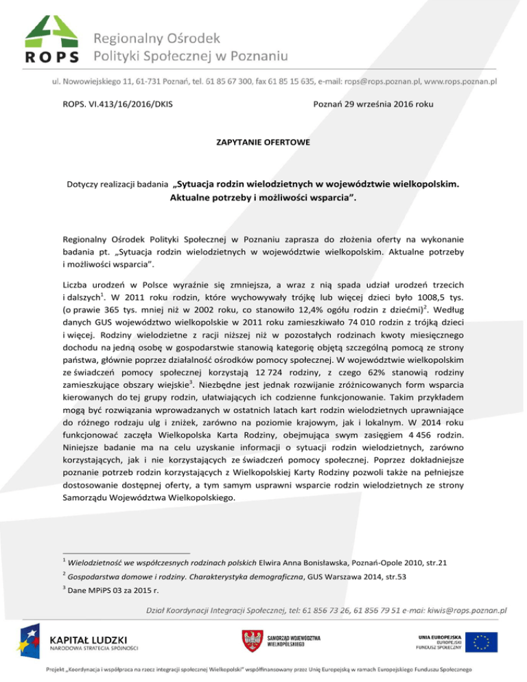 Dotyczy realizacji badania „Sytuacja rodzin wielodzietnych w