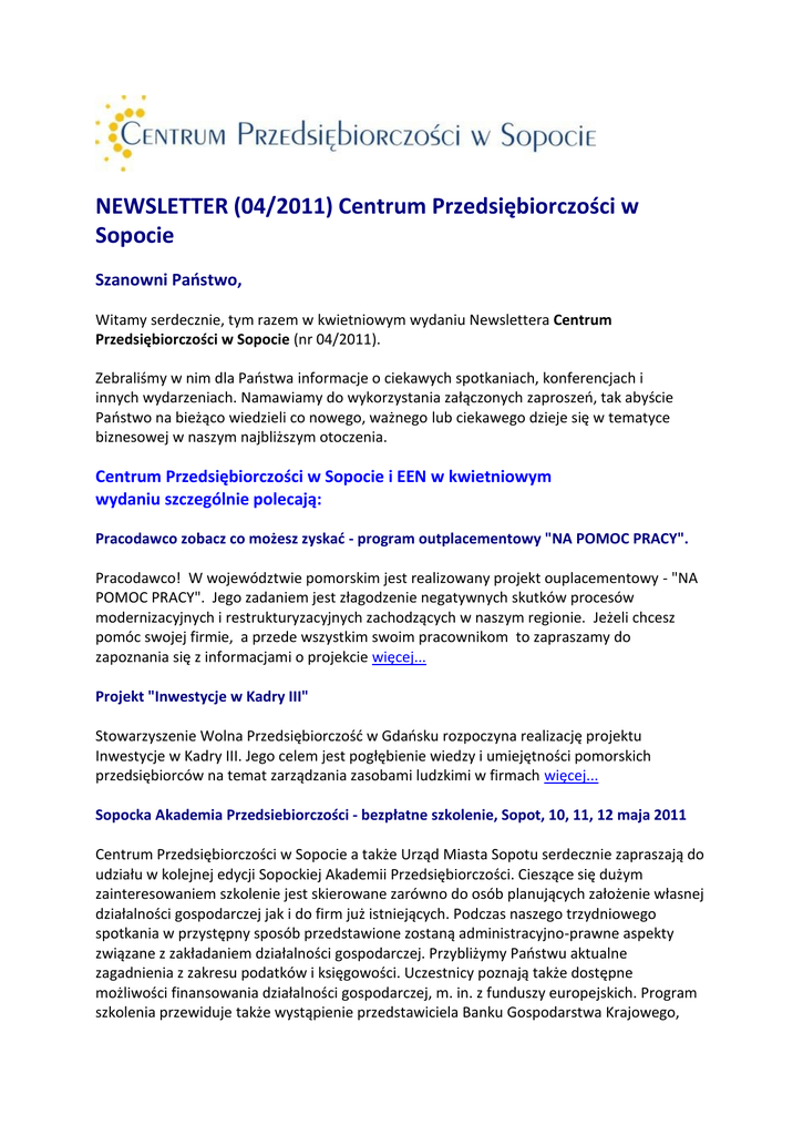 kwiecień 2011 - Centrum Przedsiębiorczości w Sopocie