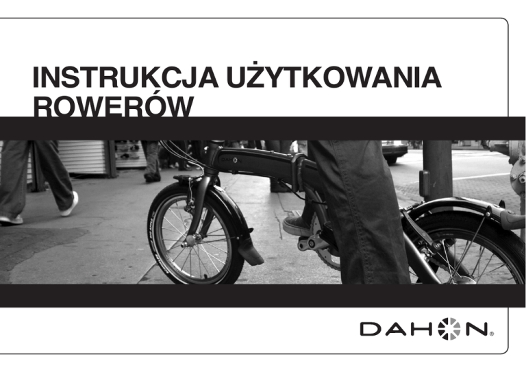 Instrukcja użytkowania rowerów PL 1. 2. 3. 4. 5. 6. 7. 8. 9. 10. 11. 12. 13. 14. 15. Koło Przerzutka tylna Łańcuch Korby Pedał Sztyca siodła Siodło Mocowanie bidonu Rama Stery Mostek Kierownica Dźwignie hamulcowe Widelec Hamulce UWAGA: Niniejsza instrukcja nie pełni roli kompletnego podręcznika użytkowania, obsługi serwisowej oraz książki naprawczej roweru. W przypadku konieczności dokonania naprawy lub regulacji podzespołów, które nie zostały w niej opisane zwróć się z prośbą o pomoc do sklepu lub serwisu rowerowego. 2 Spis treści Na początek...................................................................... 4 Dopasowanie roweru....................................................................................4 Bezpieczeństwo przede wszystkim.............................................................4 Niniejsza instrukcja użytkowania rowerów Dahon.....................................4 Bezpieczeństwo................................................................ 5 Podstawy.......................................................................................................5 Bezpieczeństwo jazdy..................................................................................5 Jazda po mokrej nawierzchni......................................................................5 Jazda po zmroku..........................................................................................6 Dopasowanie roweru....................................................... 7 Regulacja siodełka........................................................................................7 Regulacja wysokości i kąta kierownicy.......................................................7 Technika............................................................................ 8 Koła................................................................................................................8 Montaż przedniego koła za pomocą zacisku QR...................................... 8 Montaż tylnego koła za pomocą zacisku QR............................................. 8 Hamulce: Hamulce szczękowe i hamulce tarczowe..................................9 Właściwości i obsługa hamulców............................................................... 9 Jak działają hamulce?................................................................................. 9 Zmiana przełożeń.......................................................................................10 Jak działa układ napędowy z przerzutką zewnętrzną?........................... 10 Zmiana przełożeń...................................................................................... 10 Zmiana przełożenia za pomocą tylnej przerzutki..................................... 10 Zmiana przełożenia za pomocą przedniej przerzutki.............................. 10 Na którym przełożeniu jechać?................................................................ 11 Jak działa przerzutka wewnętrzna wbudowana w piastę tylnego koła?.11 Zmiana przełożeń...................................................................................... 11 Na którym przełożeniu jechać?................................................................ 11 Instrukcje serwisowe dla rowerów marki Dahon:.....................................12 Montaż uchwytu do mocowania koszyka................................................ 12 Regulacja wspornika kierownicy VRO..................................................... 13 Regulacja wspornika kierownicy Dahon NVO......................................... 14 Regulacja zawiasu kolumny kierownicy................................................... 15 Regulacja sterów....................................................................................... 17 Regulacja zacisku zawiasu ramy............................................................. 18 Regulacja zawiasu LockJaw..................................................................... 22 Regulacja siodełka mocowanego do sztycy Kore I-Beam...................... 26 Środek suportowy w model Cadenza...................................................... 27 Wymienny hak tylnej przerzutki................................................................ 27 Regulacja przerzutki Dahon Neos............................................................ 28 Łańcuchy.....................................................................................................32 Pedały..........................................................................................................32 Transportowanie roweru składanego........................................................33 Obsługa serwisowa........................................................ 34 Okresy międzyprzeglądowe.......................................................................34 Okres docierania....................................................................................... 34 Po każdej długiej wycieczce lub po jeździe w trudnym terenie............... 34 Po każdej długiej wycieczce, jeździe w trudnym terenie lub po każdych 10 – 20 godzinach jazdy...................................................................... 34 Gwarancja....................................................................... 36 Tabela momentów dokręcania śrub.............................. 37 3 PL Na początek Wszystkie składane rowery przeznaczone są do użytkowania na utwardzonych nawierzchniach. Składane rowery typu górskiego nie są przeznaczone do skoków lub innych form ekstremalnej jazdy. Upewnij się, że Twój nowy rower będzie wykorzystywany zgodnie z powyższym zaleceniem, w przeciwnym razie może dojść do zbyt wczesnego zużycia jego elementów. PL Dopasowanie roweru • Czy Twój rower ma prawidłowy rozmiar? Jeżeli jest zbyt duży lub za mały do Twojego wzrostu, jazda na nim może okazać się niebezpieczna. Jeśli rozmiar roweru jest niewłaściwy zwróć się do sklepu, w któ