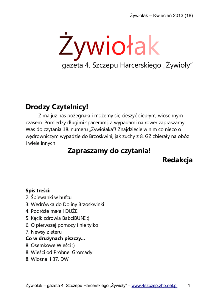 gazeta 4. Szczepu Harcerskiego „Żywioły” - Żywiołak