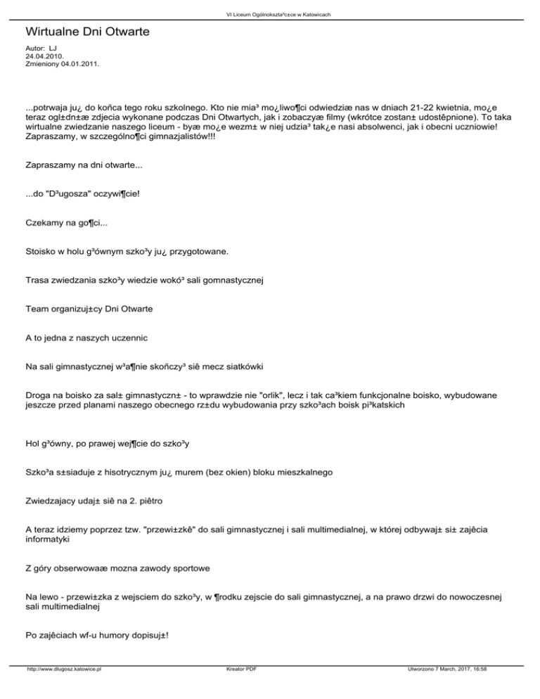 wirtualne zwiedzanie naszego liceum - byæ mo¿e wezm± w niej udzia³ tak¿e nasi absolwenci, jak i obecni uczniowie!