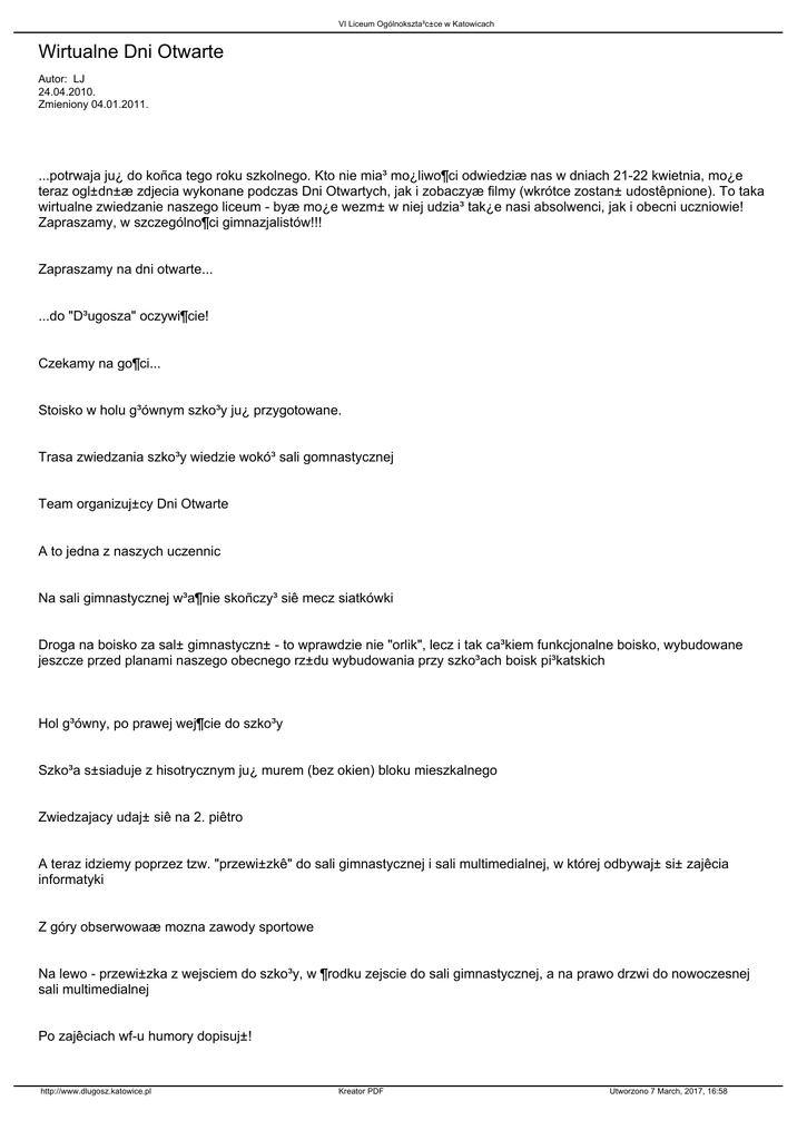 VI Liceum Ogólnokszta³c±ce w Katowicach