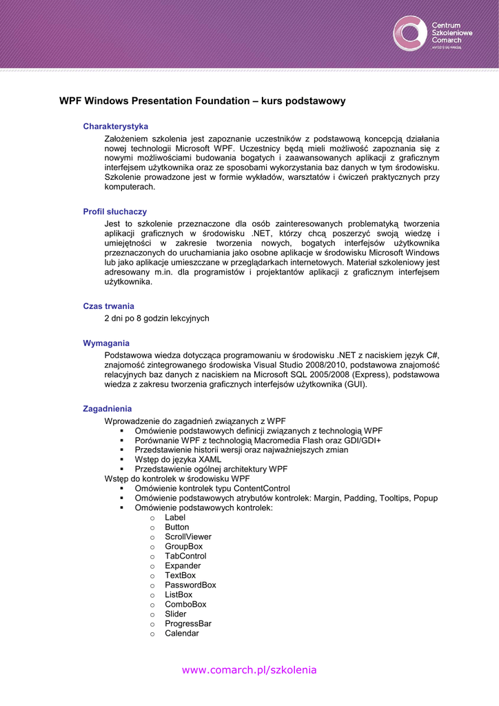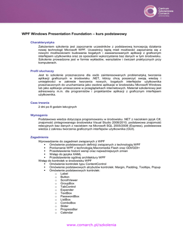 www.comarch.pl/szkolenia WPF Windows Presentation Foundation