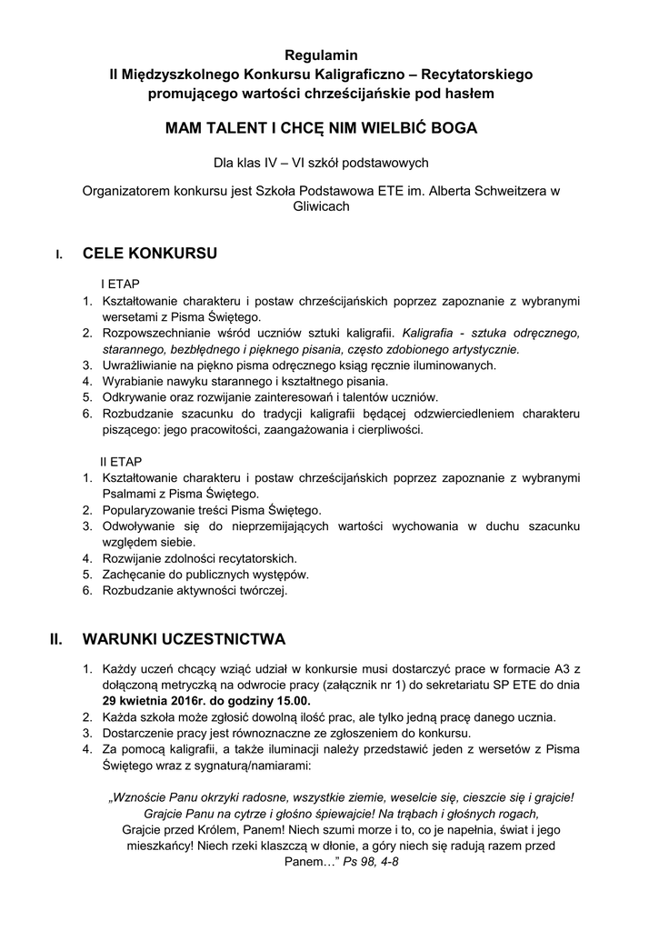 mam talent i chcę nim wielbić boga cele konkursu ii. warunki