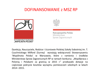 DOFINANSOWANIE z MSZ RP - PolskaSzkolaSurrey.com