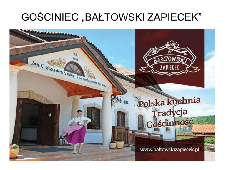 GOŚCINIEC „BAŁTOWSKI ZAPIECEK” Niezwykłe miejsce na Twoją wyjątkową imprezę. „Bałtowski Zapiecek” położony jest w malowniczej części Bałtowskiego Kompleksu Turystycznego, tuż obok stoku narciarskiego. To idealne miejsce zarówno na szaloną imprezę integracyjną, kameralne spotkanie biznesowe czy konferencję lub szkolenie. Wnętrze „Bałtowskiego Zapiecka” zostało zaprojektowane tak, aby każdy Gość mógł poczuć niepowtarzalny klimat tego miejsca. Dysponujemy dwoma przestronnymi salami i kameralną antresolą. Możemy zorganizować imprezę dla 400 osób. Latem zapraszamy na uroczy taras z widokiem na stok. Profesjonalna obsługa Naszych kelnerów odznacza wysoka kultura osobista, doskonała intuicja oraz poczucie humoru co ma znaczący wpływ na samopoczucie naszych gości. Wyjątkowe Menu „Bałtowski Zapiecek” to polska kuchnia, tradycja i gościnność. Proponujemy Państwu proste, smaczne i aromatyczne potrawy wykonane z lokalnych produktów. Nasz Szef Kuchni stworzył wyjątkowe menu, w którym dominują smaki charakterystyczne dla regionu świętokrzyskiego. Szef kuchni.... Szef kuchni, to prawdziwy gastronomiczny człowiek renesansu – kulinarny uniwersalista. Potrafi tworzyć dania należące do różnych tradycji i stylów. Piękno i harmonia to jego znak rozpoznawczy. Doskonale komponuje potrawy zarówno w warstwie wyglądu, jak i smaku. Nie boi się eksperymentowania uzyskując zaskakujące, ale zawsze miłe dla podniebienia efekty. Umiejętnie łączy prostotę z wyrafinowaniem. Zapraszamy na degustację win W piwnicy restauracji stworzyliśmy idealne warunki do przechowywanie i dojrzewania tego boskiego trunku. Posiadamy jedną z najdłuższych kart win w Polsce i najlepiej wyselekcjonowaną; Proponujemy marki win od podstawowych, codziennych przez bardziej wyszukane, do specjalnie wyselekcjonowanych, najbardziej znanych w świecie winiarskim - wina wyselekcjonowane przez sommeliera – experta i pod jego baczną opieką. Imprezy firmowe Specjalnie dla Państwa możemy zorganizować firmową imprezę integracyjną, która pozwoli zmotywować pracowników do bardziej efektywnej pracy. Imprezy firmowe pozwalają oderwać się od problemów dnia codziennego, stresów pracy i spojrzeć pod innym kątem na wykonywane obowiązki zawodowe. Jesteśmy w stanie zorganizować imprezy nawet do 400 osób. Live cooking Suto zastawione stoły szwedzkie Stoły z chłopskim jadłem Kącik z deserami, ciastami z własnej Cukierni „Bałtowskie Wypieki”. Rezerwacja imprez Anna Marzec Tel.797-028-497 [email protected] www.baltowskizapiecek.pl