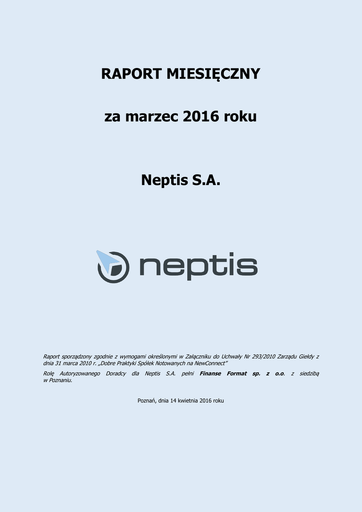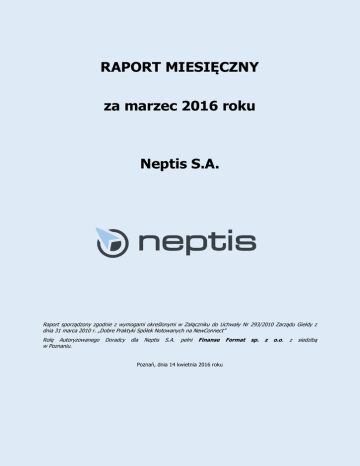RAPORT MIESIĘCZNY za marzec 2016 roku Neptis SA