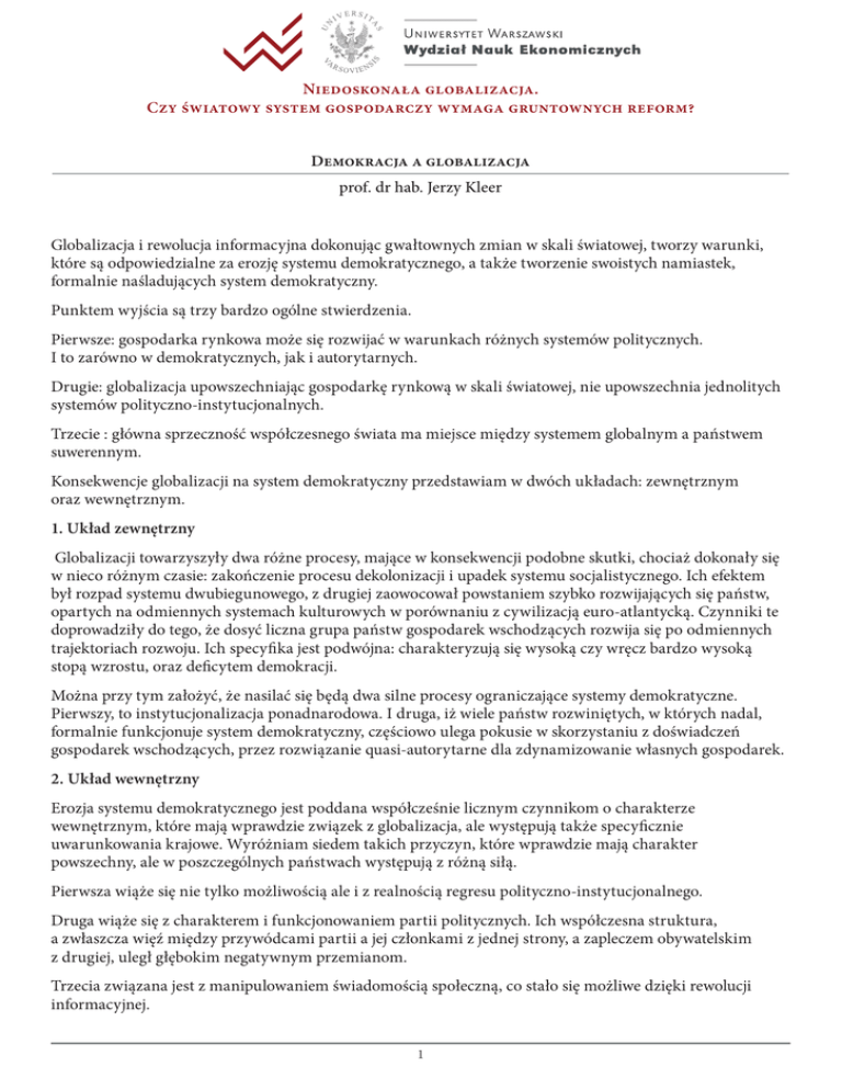 Demokracja a globalizacja prof. dr hab.