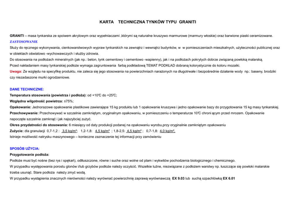 KARTA TECHNICZNA TYNKÓW TYPU GRANITI
