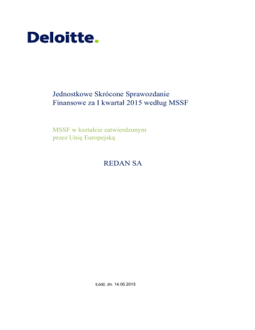 Jednostkowe Sprawozdanie Finansowe Redan SA I Q 2015