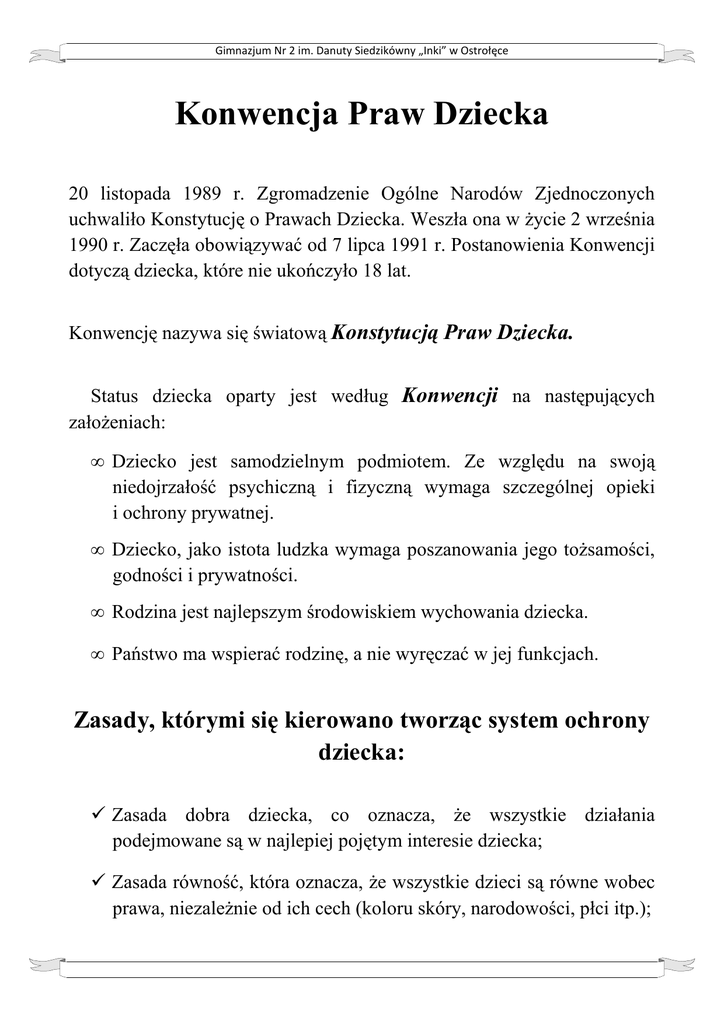 Konwencja Praw Dziecka - Witamy na stronie Gimnazjum Nr 2 w