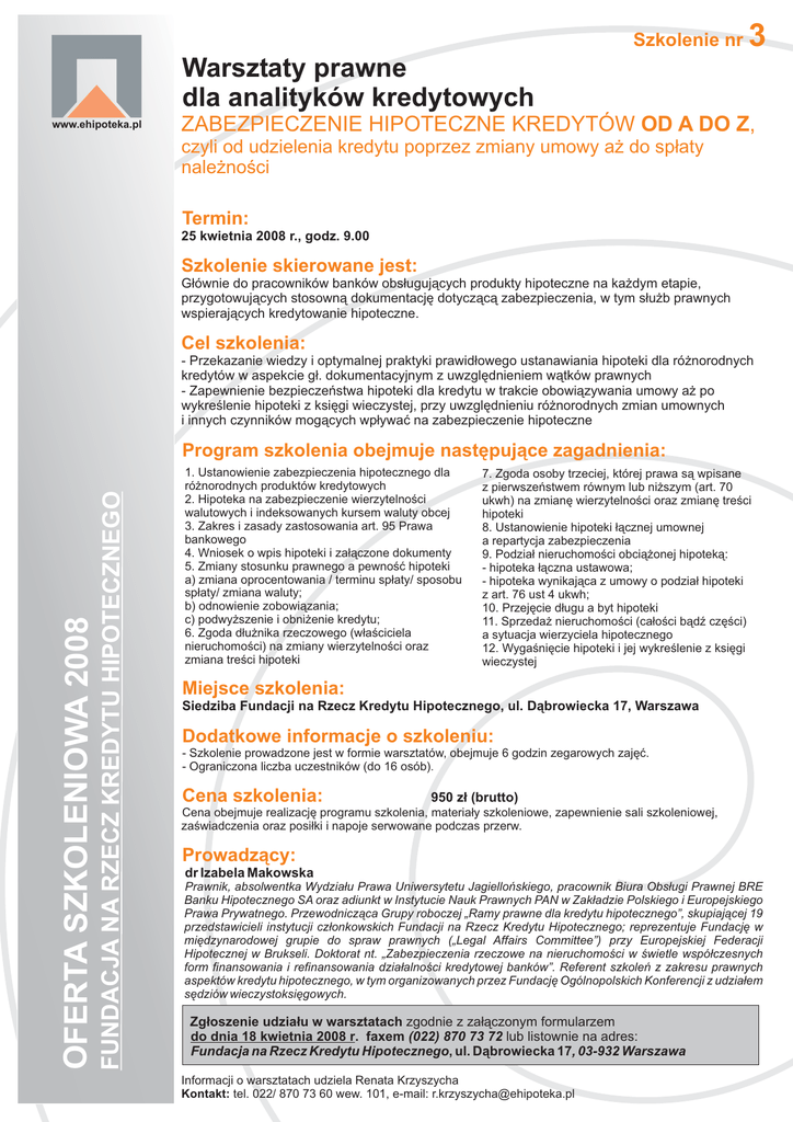 3 OFERTA SZKOLENIOW A 2008 - Fundacja na Rzecz Kredytu