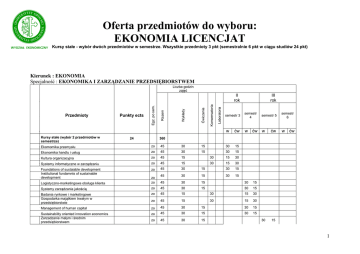 Oferta przedmiotów do wyboru: EKONOMIA LICENCJAT