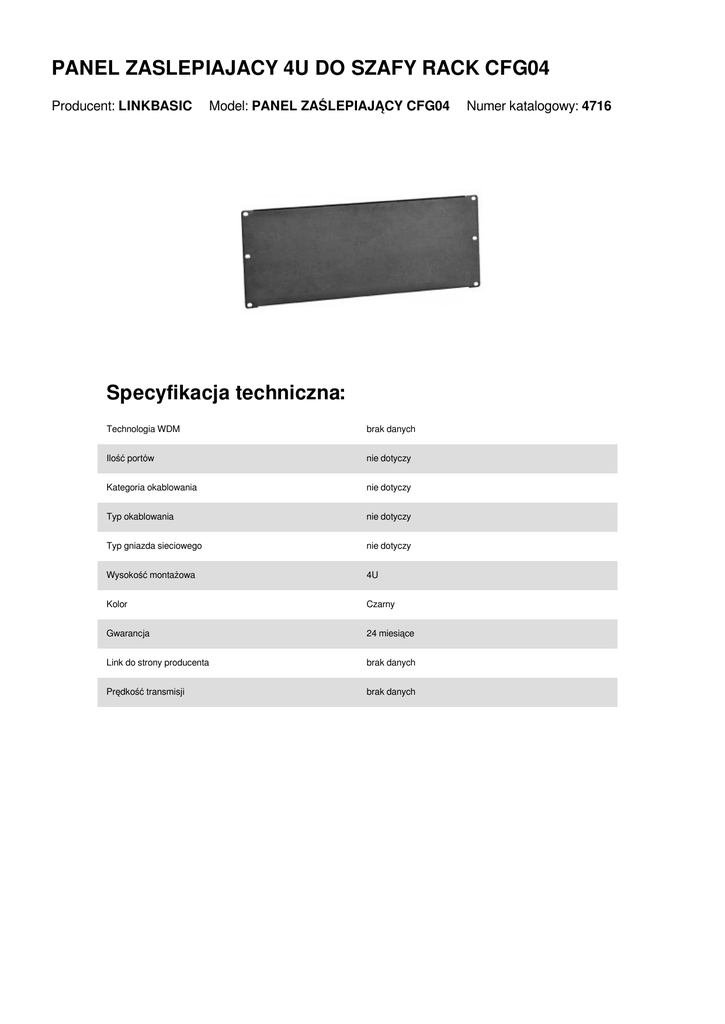 PANEL ZASLEPIAJACY 4U DO SZAFY RACK