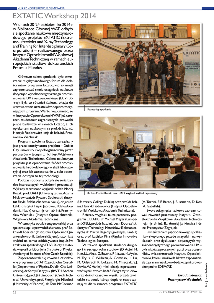 EXTATIC Workshop 2014 - Instytut Optoelektroniki WAT