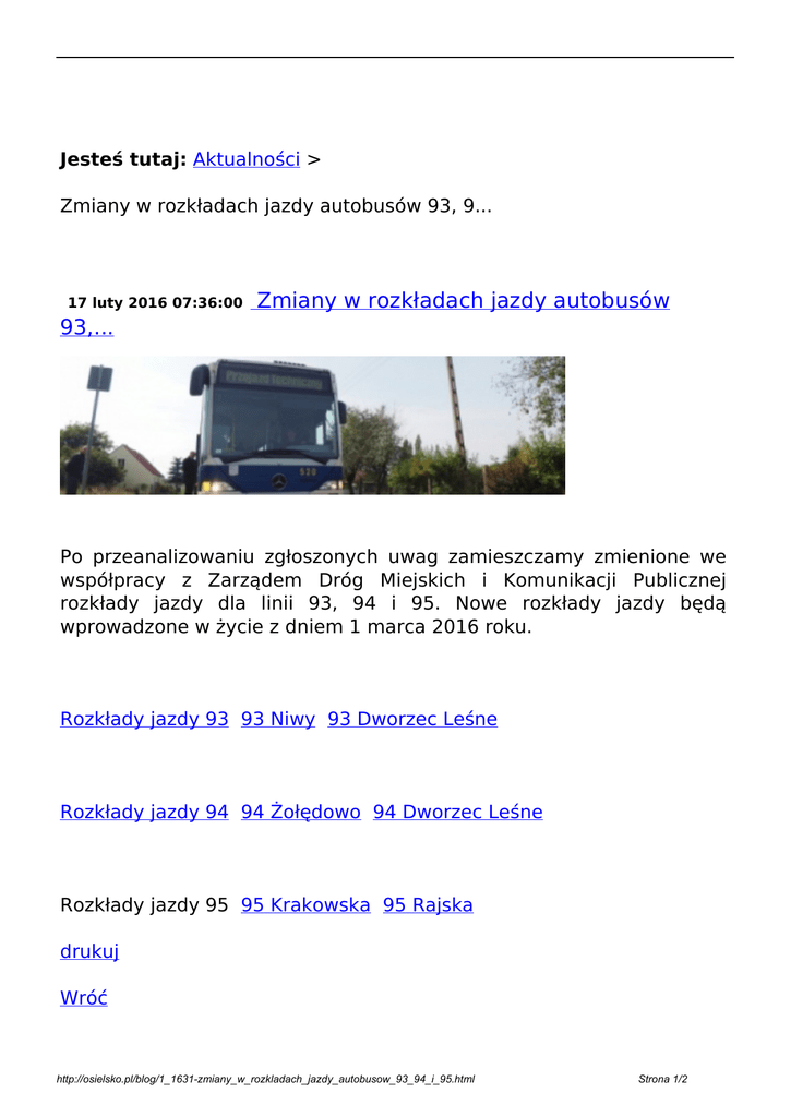 17 luty 2016 07:36:00 Zmiany w rozkładach jazdy autobusów 93,