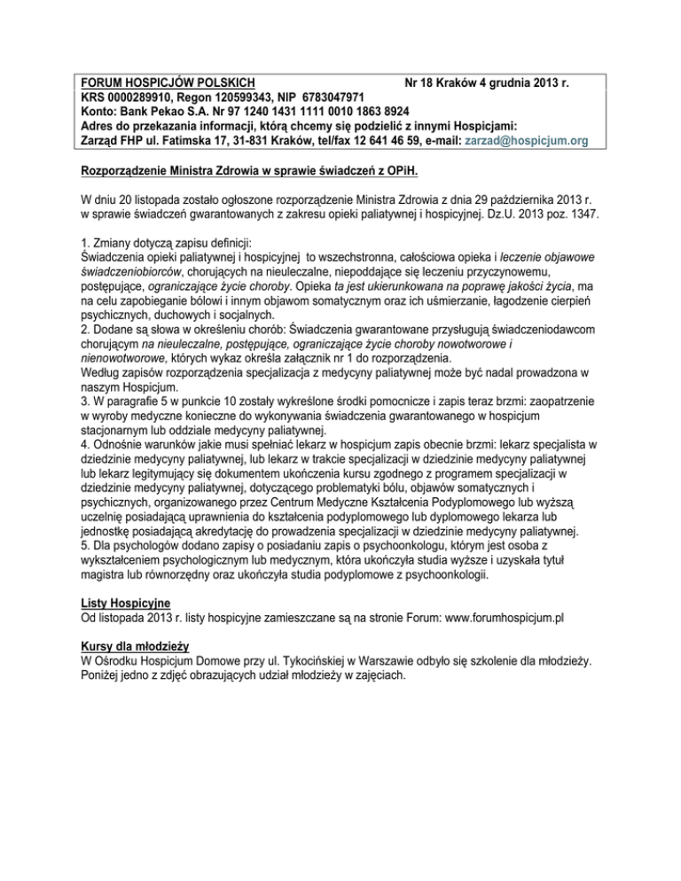 FORUM HOSPICJÓW POLSKICH Nr 18 Kraków 4 grudnia 2013 r. KRS