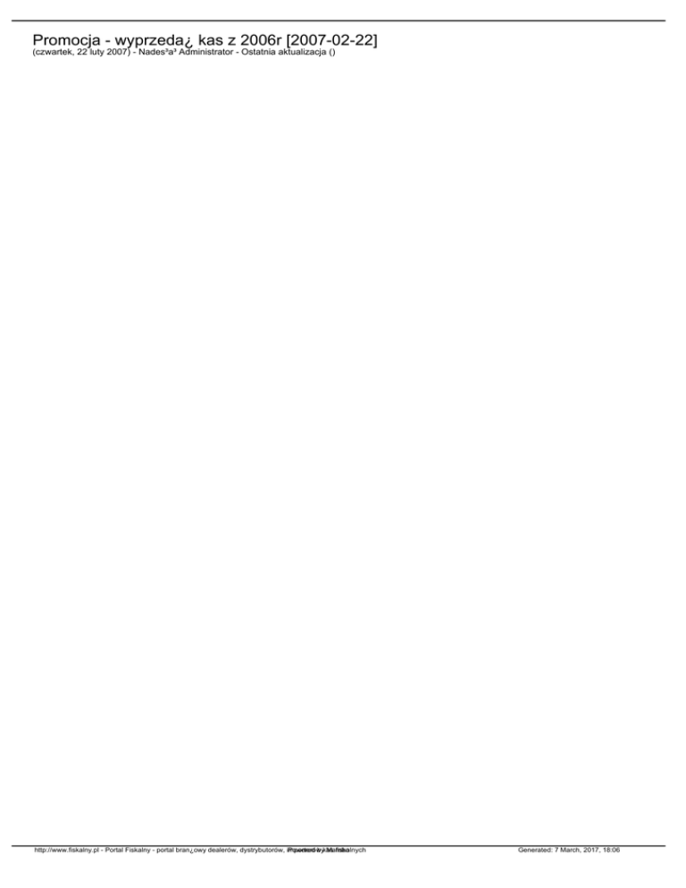 Promocja - wyprzeda¿ kas z 2006r [2007-02-22] (czwartek, 22 luty 2007) - Nades³a³ Administrator - Ostatnia aktualizacja () http://www.fiskalny.pl - Portal Fiskalny - portal bran¿owy dealerów, dystrybutorów, importerów Powered bykas Mambo fiskalnych Generated: 7 March, 2017, 18:06