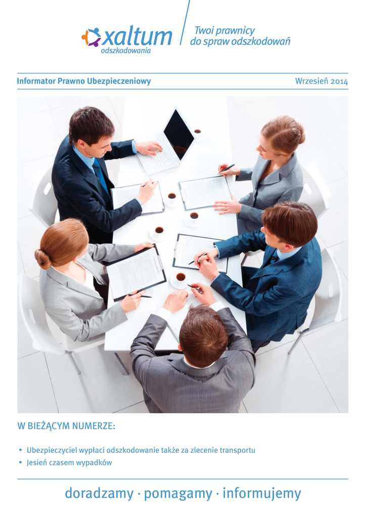 Informator Prawno Ubezpieczeniowy Wrzesieñ 2014 W BIE¯¥CYM NUMERZE: • Ubezpieczyciel wyp³aci odszkodowanie tak¿e za zlecenie transportu • Jesieñ czasem wypadków doradzamy pomagamy informujemy SPIS TREŒCI AKTUALNOŒCI ORZECZNICTWO str. 3 Ubezpieczyciel wyp³aci odszkodowanie tak¿e za zlecenie transportu str. 3 Po œmierci ma³¿onka nie nabywa siê ponownie nieruchomoœci przy wspó³w³asnoœci str. 3 Zadoœæuczynienie za wypadek przed 03.08.2008 r. PROJEKTY, ZMIANY str. 4 NFZ chce uzyskaæ prawo regresu do nietrzeŸwych kierowców str. 4 Human Body Trauma Index – system oceniania poziomu obra¿eñ cia³a str. 4 Co ze zmianami w prawie karnym? PRAWO CO DNIA str. 5 Najem pojazdu zastêpczego – prawo poszkodowanego, a problem dla s¹dów str. 5 Uproszczona likwidacja szkody str. 5 Ubezpieczenie uczniów – obowi¹zkowe czy dobrowolne? str. 5 KNF chce obj¹æ nadzorem oddzia³y firm zagranicznych str. 6 Ubezpieczenie bêdzie mo¿na kupiæ w kiosku str. 6 Jesieñ czasem wypadków str. 6 W 2014 r. mniej skarg str. 6 Kary dla ubezpieczycieli str. 6 PZU S.A. mo¿e przej¹æ LINK 4 PROWADZONE SPRAWY str. 7 Wypadek na lodowisku, a odpowiedzialnoœæ w³aœciciela lodowiska str. 2 AKTUALNOŒCI ORZECZNICTWO Ubezpieczyciel wyp³aci odszkodowanie tak¿e za zlecenie transportu Wyrok S¹du Okrêgowego w £odzi, sygn. akt XIII Ga 7/14 S¹d Okrêgowy w £odzi stwierdzi³, ¿e poszkodowany przedsiêbiorca, ma prawo w ramach ubezpieczenia wynaj¹æ us³ugê transportow¹, a nie tylko samochód zastêpczy, jednak odszkodowanie nie mo¿e uwzglêdniæ kosztów, które i tak poszkodowany by poniós³, gdyby nie uszkodzono mu pojazdu. S¹d nie mia³ w¹tpliwoœci, i¿ te roszczenia s¹ co do zasady zasadne. Sporna by³a jedynie wysokoœæ. Ubezpieczyciel ¿¹da³ znacznego zmniejszenia odszkodowania, odpowiadaj¹cego zarówno kosztom paliwa jak i pracownika, natomiast s¹d uzna³ za zasadne zmniejszenie odszkodowania jedynie o koszy paliwa. Poszkodowany wykaza³ bowiem, ¿e nie ponosi³ kosztów pracownika, a zatem nie podstaw do umniejszenia odszkodowania o koszty, które Poszkodowany przedsiębiorca, ma prawo do odszkodowania nie tylko z tytułu czynszu najmu samochodu zastępczego, ale także z tytułu poniesionych kosztów zlecenia usługi transportowej.” by nie powsta³y. Po œmierci ma³¿onka nie nabywa siê ponownie nieruchomoœci przy wspó³w³asnoœci Wyrok Wojewódzkiego S¹du Administracyjneg w Gdañsku Sprawa dotyczy³a kobiety, która po œmierci mê¿a sprzeda³a mieszkanie. Urz¹d Skarbowy stwierdzi³, ¿e skoro kobieta nie odczeka³a 5 lat od dnia nabycia nieruchomoœci (a uzna³, ¿e nabycie nast¹pi³o w dniu œmierci mê¿a), to nie przys³uguje jej ulga podatkowa. W takiej sytuacji zobowi¹za³ kobietê do zap³aty podatku. Sprawa trafi³a do Wojewódzkiego S¹du Administracyjnego w Gdañsku, który uzna³, ¿e je¿eli nieruchomoœæ zosta³a nabyta do maj¹tku wspólnego, to po œmierci ma³¿onka, drugi nie nabywa ponownie po³owy lokalu. Urz¹d Skarbowy argumentowa³, ¿e ka¿dy z ma³¿onków naby³ po³owê mieszkania, a drug¹ po³owê kobieta naby³a dopiero po œmierci mê¿a. WSA w Gdañsku uchyli³ jednak decyzjê urzêdu skarbowego, dziêki czemu kobieta nie jest zobowi¹zana do zap³aty podatku. Zadoœæuczynienie za wypadek przed 03.08.2008 r. Postanowienie S¹du Najwy¿szego z dnia 27.06.2014 r., sygn. akt: III CZP 2/14 S¹d Najwy¿szy uzasadni³ swe postanowienie, które wydane zosta³o w zwi¹zku ze skierowanym pytaniem prawnym „Czy osobie najbli¿szej przys³uguje z tytu³u umowy obowi¹zkowego ubezpieczenia odpowiedzialnoœci cywilnej posiadaczy pojazdów mechanicznych zadoœæuczynienie pieniê¿ne za doznan¹ krzywdê wynikaj¹c¹ z naruszenia jej dobra osobistego w postaci szczególnej wiêzi emocjonalnej ze zmar³ym, nawet gdy œmieræ nast¹pi³a przed dniem 03.08 2008 r.?”. S¹d ten wskaza³, ¿e obowi¹zek zap³aty rekompensat za tego rodzaju krzywdy przez ubezpieczyciela w ramach ubezpieczenia OC posiadaczy pojazdów mechanicznych jest bezdyskusyjny. S¹d Najwy¿szy uznaj¹c, ¿e zagadnienie zosta³o ju¿ rozstrzygniête, odmówi³ wydania uchwa³y w tym zakresie. Tym samym jest to kolejne orzeczenie potwierdzaj¹ce, ¿e osobom bliskim przys³uguje zadoœæuczynienie w przypadku tragicznej œmierci przed 03.08.2008 r. str. 3 Osobom bliskim tragicznie zmarłego przed 03.08.2008 r. przysługuje zadośćuczynienie za naruszenie dóbr osobistych.” AKTUALNOŒCI PROJEKTY, ZMIANY NFZ chce uzyskaæ prawo regresu do nietrzeŸwych kierowców Zosta³ przygotowany projekt ustawy daj¹cej regionalnym oddzia³om Narodowego Funduszu Zdrowia prawo do dochodzenia od nietrzeŸwych kierowców zwrotu kosztów leczenia ofiar wypadków drogowych spowodowanych przez nietrzeŸwych kierowców. Uzasadnieniem ww. projektu jest fakt, ¿e ca³oœæ kosztów leczenia takich ofiar jest pokrywana z kieszeni wszystkich podatników, a nie powinni oni ponosiæ kosztów spowodowanych przez nietrzeŸwych kierowców. Oznacza to tym samym, ¿e nietrzeŸwy sprawca wypadku zap³aci nie tylko zadoœæuczynienie i odszkodowanie na rzecz poszkodowanego (ubezpieczycielowi w ramach regresu) ale nadto bêdzie zobowi¹zany do poniesienia kosztów zwi¹zanych z leczeniem poszkodowanego w ramach NFZ. NFZ chce uzyskać prawo do dochodzenia od nietrzeźwych kierowców zwrotu kosztów leczenia ofiar wypadków drogowych spowodowanych przez nietrzeźwych kierowców.” Koszty leczenia mog¹ wynosiæ kilkadziesi¹t tysiêcy z³otych, zadoœæuczynienie natomiast kilkaset tysiêcy. Przyk³adowo mo¿na wskazaæ, ¿e przyjazd karetki na miejsce zdarzenia to 400 z³otych, skomplikowana operacja ratuj¹ca ¿ycie po uszkodzeniach wewnêtrznych to 15.000 z³otych. Pomys³odawcy zmian zaznaczaj¹, ¿e celem zmian jest nie tylko wyposa¿enie NFZ w prawne œrodki pozwalaj¹ce na „regres”, ale przede wszystkim prewencja. Mo¿e œwiadomoœæ zap³aty dodatkowych kilkudziesiêciu z³otych powstrzyma n
