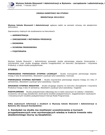 Rekrutacja 2012/2013 - Wyższa Szkoła Ekonomii i Administracji w
