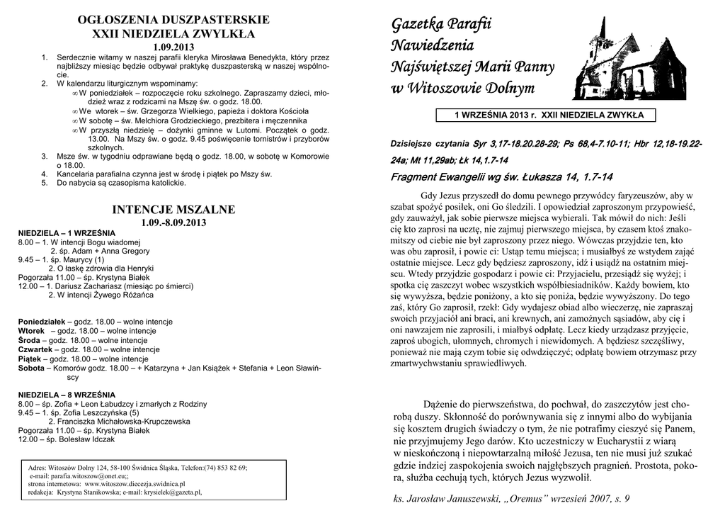 gazetka 1 09 13 - Parafia Witoszów Dolny
