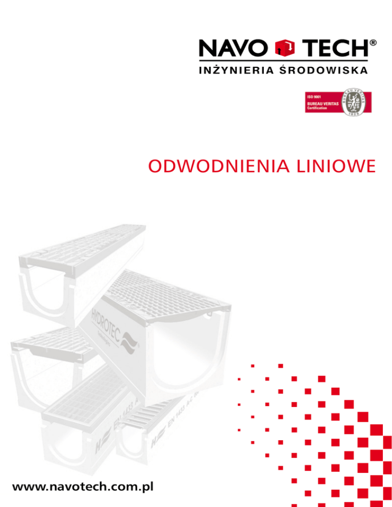 ODWODNIENIA LINIOWE www.navotech.com.pl Przegląd systemów A 15 B 125 MINI 100 A MINI 100 B Ruszt szczelinowy ocynkowany Ruszt kratowy ocynkowany C 250 D 400 E 600 F 900 A 15 - F 900 HYDROline Odwodnienie niskoprofilowe TOP 100 A 15 - C 250 Ruszt szczelinowy ocynkowany Ruszt kratowy ocynkowany MAXI 100 / 150 / 200 A 15 - F 900 MAXI 100 C / D / F MAXI 150 D / F MAXI F1 300 MAXI 200 D / F E 600 MAXI 300 E HYDROblock 100 / 200 / 300 HYDROblock 100 A 15 - F 900 HYDROblock 200 HYDROblock 300 Klasy obciążeń według normy EN 1433 Klasse A 15: = 15Klasa kN Prüfkraft A 15 = obciążenie 15 kN Verkehrsflächen, die ausschließlich von Fussgängern Obszary, które mogą być und Radfahrern benutzt werden können. używane wyłącznie przez pieszych i rowerzystów. Klasse B 125: = 125 kN BPrüfkraft Klasa 125 = obciążenie 125 kN Gehwege, Fussgängerzonen und vergleichbare Flächen, Chodniki, strefy dla PKW-Parkflächen undpieszych PKWiParkdecks. inne obszary o podobnym Klasse C 250: = 250 kNCPrüfkraft Klasa 250 = obciążenie 250 kN Bordrinnenbereich und unbefahrene Seitenstreifen und Strefy przykrawężnikowe, Ähnliches. powierzchnie poboczy nie charakterze, parkingi dla samo- obciążone ruchem i podobchodów osobowych lub zatoczki ne. Korytka krawężnikowe dla samochodów osobowych. są zawsze grupą 3. 2 Klasse D 400: = 400 kNDPrüfkraft Klasa 400 = obciążenie 400 kN Fahrbahnen von Strassen (auch Fussgängerstrassen), SeitenJezdnie drógStrassen (włączając ciągi streifen von und Parkflächen, die für pobocza alle Arten oraz von dla pieszych), Strassenfahrzeugen zugelassen parkingi dla wszelkiego rodzasind. ju pojazdów drogowych. Klasse E 600: = 600 kNEPrüfkraft Klasa 600 = obciążenie 600 kN Flächen, die mit hohen Radlasten befahren werden, z.B. Obszary podlegające Häfen und Dockanlagen.dużym Klasse F 900: = 900Klasa kN Prüfkraft F 900 = obciążenie 900 kN Flächen, die mit besonders hohen Radlasten befahren Obszary podlegające szczewerden, z.B. Flugbetriebsflächen.dużym obciążeniom gólnie obciążeniom spowodowanym ruchem kołowym, np. porty spowodowanym ruchem i doki. kołowym, np. pasy startowe samolotów. SPIS TREŚCI Odwodnienia liniowe Strona System MINI 6 7 8 27 Opis systemu Korytka MINI 100 Korytka MINI 100 ze szczeliną wlotową Przykład montażu korytek MINI System HYDROline Opis systemu Asortyment 9 System TOP 10 11 - 15 28 Opis systemu Korytka TOP Przykład montażu korytek TOP System MAXI Opis systemu Korytka MAXI 100 Korytka MAXI 150 Korytka MAXI 200 16 17 - 18 19 20 System MAXI F1 300 Przykłady montażu korytek MAXI 100 / 200 / 300, MAXI F1 300 21 - 22 27 - 29 System HYDROblock Opis systemu Korytka HYDROblock Przykłady montażu korytek HYDROblock 23 24 29 Informacje dodatkowe Ogólne warunki montażu Akcesoria dodatkowe Zastosowania specjalne 25 - 26 30 31-33 Pomoc dla projektantów Wytyczne do obliczeń hydraulicznych 34 3 Firma Firma NavoTech Inżynieria Środowiska przedstawia w niniejszym katalogu produktowym nowoczesne systemy odwodnień liniowych produkowane przez renomowaną niemiecką firmę Hydrotec. Systemy odwodnień liniowych powszechnie stosowane są w budownictwie do liniowego i punktowego odwadniania ulic, parkingów, stacji paliw, garaży, hal, myjni samochodowych itp. Odwodnienia liniowe pełnią również ważną funkcję ochrony środowiska – chronią grunty i wody gruntowe przed zanieczyszczeniem. Prezentowane odwodnienia liniowe mogą być stosowane w pełnym zakresie obciążeń od A 15 do F 900 według normy EN 1433. Posiadamy własne zaplecze techniczne i projektowe, co pozwala nam na realizację zadań jednostkowych. Proponujemy naszą pomoc w doborze systemów odwodnień liniowych i uzgadnianiu projektów. W naszych działaniach szczególną uwagę poświęcamy kontroli jakości naszych produktów i kompleksowości dostaw, tak aby spełniały one oczekiwania najbardziej wymagających Klientów. Posiadamy certyfikowany System Zarządzania Jakością zgodny z normą ISO 9001:2008, certyfikat numer: PL11000282/P. Systemy odwodnień liniowych są uzupełnieniem bogatej oferty firmy NavoTech Inżynieria Środowiska, w programie produkcji i sprzedaży firma NavoTech posiada: Instalacje Przemysłowe • fizykochemiczne systemy oczyszczania, podczyszczania ścieków technologicznych • neutralizacja, dezynfekcja wody i ścieków • układy koagulacji i flotacji ścieków • układy rozbijania i rozdziału emulsji olejowych w instalacjach przemysłowych • układy zamknięte myjni samochodowych • odzysk wody deszczowej. Produkty • Separatory substancji ropopochodnych, tłuszczu i skrobi, zawiesin mineralnych i organicznych • przepompownie wody i ścieków • oczyszczalnie ścieków 3-2000 RLM • neutralizatory ścieków kwaśnych i kwasów akumulatorowych • zbiorniki podziemne / wolnostojące PE-HD, PP, betonowe: przemysłowe, magazynowe, retencyjne • przyrządy kontrolne i pomiarowe. • elementy kanalizacji: odwodnienia liniowe, komory drenażowe, regulatory przepływu, klapy zwrotne • pręt spawalniczy PE-HD Usługi i serwis • rozruch urządzeń i instalacji • serwis urządzeń i instalacji przemysłowych • remonty i renowacje urządzeń wod-kan • transport odpadów ciekłych • spawanie PE, PP, PVC, stali węglowej i chromoniklowej. Przy realizacji zadań oferujemy: • dobór technologii i doradztwo techniczne • dostawę i montaż kompletnych urządzeń i instalacji • rozruchy technologiczne • serwis gwarancyjny i pogwarancyjny. HYDROTEC Technologies należy do wiodących producentów techniki odwodnieniowej w Europie. Działania firmy wykraczają także poza granice starego kontynentu. Poza Europą do jakości naszych produktów „Made in Germany” przekonali się także liczni odbiorcy z Bliskiego i środkowego Wschodu. Korytka kablowe w Schalke Arena, włazy na Palm Tree Island w Dubaju czy korytka odwodnieniowe zamontowane na torze Formuły 1 w Szanghaju i Istambule to tylko niektóre