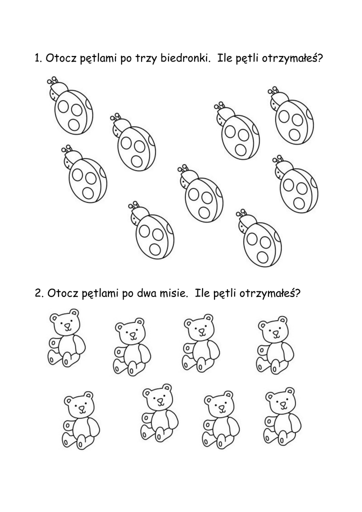 1. Otocz pętlami po trzy biedronki. Ile pętli otrzymałeś? 2