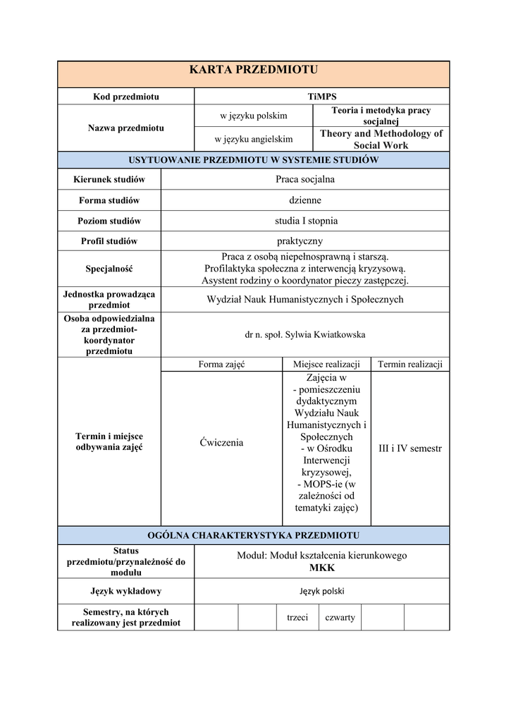 Teoria i metodyka pracy socjalnej – stacjonarne