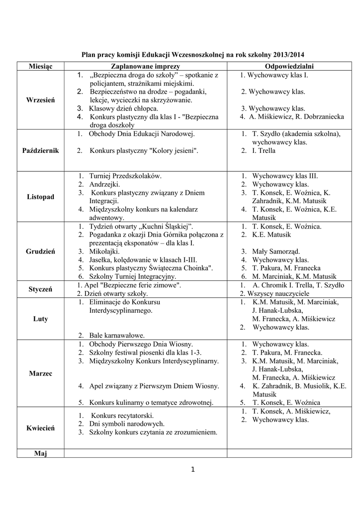 Plan pracy komisji edukacji wczesnoszkolnej 2013