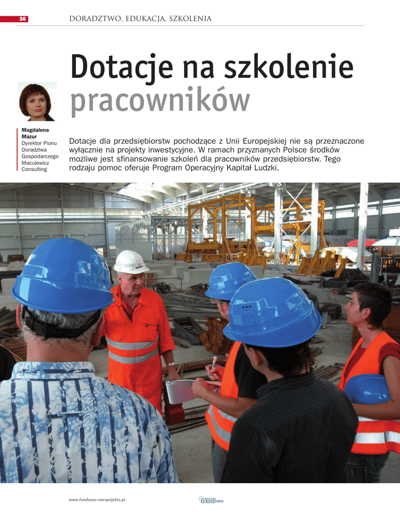 36 Doradztwo, edukacja, szkolenia Dotacje na szkolenie pracowników Magdalena Mazur Dyrektor Pionu Doradztwa Gospodarczego Maculewicz Consulting Dotacje dla przedsiêbiorstw pochodz¹ce z Unii Europejskiej nie s¹ przeznaczone wy³¹cznie na projekty inwestycyjne. W ramach przyznanych Polsce œrodków mo¿liwe jest sfinansowanie szkoleñ dla pracowników przedsiêbiorstw. Tego rodzaju pomoc oferuje Program Operacyjny Kapita³ Ludzki. www.fundusze-europejskie.pl Doradztwo, edukacja, szkolenia P rogram sk³ada siê z dziesiêciu priorytetów, realizowanych zarówno na poziomie centralnym jak i regionalnym. Przedsiêbiorcy chc¹cych sfinansowaæ szkolenia pracowników powinni zainteresowaæ siê w szczególnoœci priorytetem 2, poddzia³anie 2.1.1 „Rozwój kapita³u ludzkiego przedsiêbiorstw” oraz priorytetem 8, poddzia³anie 8.1.1 „Wspieranie rozwoju kwalifikacji zawodowych i doradztwo dla przedsiêbiorstw”. Projekty ponadregionalne Przedsiêbiorcy posiadaj¹cy struktury organizacyjne w minimum dwóch województwach mog¹ sk³adaæ wnioski o dofinansowanie szkoleñ w ramach komponentu centralnego -poddzia³anie 2.1.1. Wnioski z ca³ej Polski oceniane s¹ przez jedn¹ instytucjê – Polsk¹ Agencjê Rozwoju Przedsiêbiorczoœci. Warunkiem z³o¿enia wniosku w ramach tego komponentu jest zaplanowanie szkoleñ dla pracowników zatrudnionych na terenie przynajmniej dwóch województw. Przedsiêbiorstwa zlokalizowanie wy³¹cznie w jednym województwie oraz przedsiêbiorstwa dzia³aj¹ce w kilku województwach, które planuj¹ realizacjê szkoleñ dla pracowników z jednego województwa, mog¹ ubiegaæ siê o dofinansowanie projektów szkoleniowych w ramach komponentu regionalnego (poddzia³anie 8.1.1.). Projekty takie przyjmowane s¹ przez 16 regionalnych jednostek wdra¿aj¹cych, którymi najczêœciej s¹ wojewódzkie urzêdy pracy. Regionalne jednostki og³aszaj¹ konkursy i przygotowuj¹ dokumentacjê niezale¿nie od siebie, dlatego w ka¿dym województwie s¹ nieco inne terminy naborów wniosków oraz wytyczne, których powinni przestrzegaæ wnioskodawcy. Projekt i wniosek o dofinansowanie Projekt szkoleniowy to system naczyñ po³¹czonych ze sob¹ i wzajemnie zale¿nych. Dobry projekt szkoleniowy umo¿liwia realizacjê d³ugofalowej strategii rozwoju zasobów ludzkich w firmie. Aby tak siê sta³o konieczne jest w³aœciwe sprecyzowanie celów i rezultatów projektu, oraz ryzyk, jakie ze sob¹ niesie. Zadanie to nie jest ³atwe. Szczególnie, ¿e we wniosku o dofinansowanie czêœæ opisowa musi zmieœciæ siê w 20 – 30 tysi¹cach znaków. Powinna ona zawieraæ wiele informacji, m.in. uzasadnienie potrzeby realizacji projektu (wskazanie problemów, które wnioskodawca chce rozwi¹zaæ), cel ogólny oraz cele szczegó³owe projektu, charakterystykê osób, które zostan¹ objête wsparciem, uzasadnienie wyboru grupy docelowej, opis sposobu rekrutacji uczestników, informacje o dzia³aniach podejmowanych w projekcie. Poza tym powinien siê tam znaleŸæ opis twardych i miêkkich rezultatów oraz produktów projektu w odniesieniu do planowanych dzia³añ, informacja w jaki sposób rezultaty i produkty bêd¹ monitorowane i badane, oraz w jaki sposób przyczyni¹ siê one do realizacji celu projektu. Ponadto nale¿y zawrzeæ informacje dotycz¹ce doœwiadczenia wnioskodawcy w realizacji podobnych przedsiêwziêæ, opis sposobu zarz¹dzania projektem, zaplecza technicznego oraz kadry zaanga¿owanej w realizacjê projektu. Poza czêœci¹ opisow¹ wniosek zawiera harmonogram realizacji projektu oraz szczegó³owy bud¿et, w którym musz¹ znaleŸæ siê wszystkie wydatki, jakie zamierzamy ponieœæ w trakcie ca³ego, trwaj¹cego zwykle oko³o dwóch lat, projektu. Wydatki kwalifikowane Wydatki w projekcie mo¿na podzieliæ na kilka kategorii: s¹ to wydatki dotycz¹ce szkoleñ, doradztwa, inwestycyjne (cross-financing) oraz ogólne - zwi¹zane z zarz¹dzaniem projektem. Do wydatków zwi¹zanych ze szkoleniami mo¿na zaliczyæ wydatki zwi¹zane z prowadzeniem szkoleñ, w tym wynagrodzenie kadry szkoleniowej, koszty podró¿y, wy¿ywienia i zakwaterowania kadry szkoleniowej i uczestników szkoleñ, koszty zakupu materia³ów szkoleniowych, pokrycie kosztów op³at z tytu³u egzaminów zewnêtrznych zwi¹zanych ze szkoleniem, wynagrodzenie osób wykonuj¹cych zadania zwi¹zane z obs³ug¹ szkoleñ, amortyzacjê narzêdzi i wyposa¿enia zwi¹zanego z realizacj¹ szkoleñ (projektor multimedialny, laptop itp.), wynagrodzenie trenerów wewnêtrznych, wynagrodzenia pracowników oddelegowanych na szkolenia (obliczone jak za czas pracy wraz z kosztami zatrudnienia). Wydatki dotycz¹ce doradztwa obejmuj¹ wynagrodzenie dla podmiotów zewnêtrznych œwiadcz¹cych us³ugi doradcze powi¹zane ze szkoleniami w projekcie. Wydatki inwestycyjne mog¹ dotyczyæ zakupu œrodków trwa³ych - mebli, sprzêtu biurowego, rat leasingowych, adaptacji pomieszczeñ na potrzeby osób niepe³nosprawnych. Wartoœæ wydatków inwestycyjnych nie mo¿e stanowiæ wiêcej ni¿ 10 proc. ca³kowitych wydatków stanowi¹cych bud¿et projektu. Do wydatków zwi¹zanych z zarz¹dzaniem projektem zaliczane s¹ wydatki na rekrutacjê uczestników projektu, promocje projektu, badania i analizy, zarz¹dzanie, w tym: wynagrodzenie osób wykonuj¹cych zadania zwi¹zane z administrowaniem projektem, wydatki zwi¹zane z wynajmem i utrzymaniem pomieszczeñ biurowych, wydatki na zakup towarów i us³ug administracyjno-biurowych, wydatki zwi¹zane z obs³uga bankow¹ projektu, op³atami notarialnymi, obowi¹zkowym audytem zewnêtrznym itp. Wielkoœæ dofinansowania Op³ata za udzia³ w projekcie jest w znacznym stopniu pokrywana ze œrodków Europejskiego Funduszu Spo³ecznego. Pozosta³¹ kwotê wnosi pracodawca. W przypadku www.fundusze-europejskie.pl 37 38 Doradztwo, edukacja, szkolenia szkoleñ ogólnych, czyli pozwaJak zaplanowaæ szkolenia Najbli¿sze konkursy laj¹cych nabyæ kwalifikacje, w projekcie? Wszystkie zaplanowane