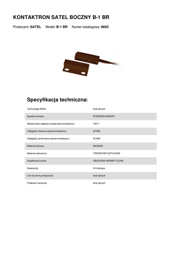 KONTAKTRON SATEL BOCZNY B-1 BR Specyfikacja