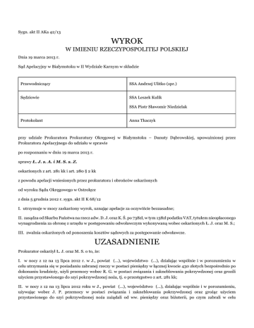 D - Portal Orzeczeń Sądu Apelacyjnego w Białymstoku
