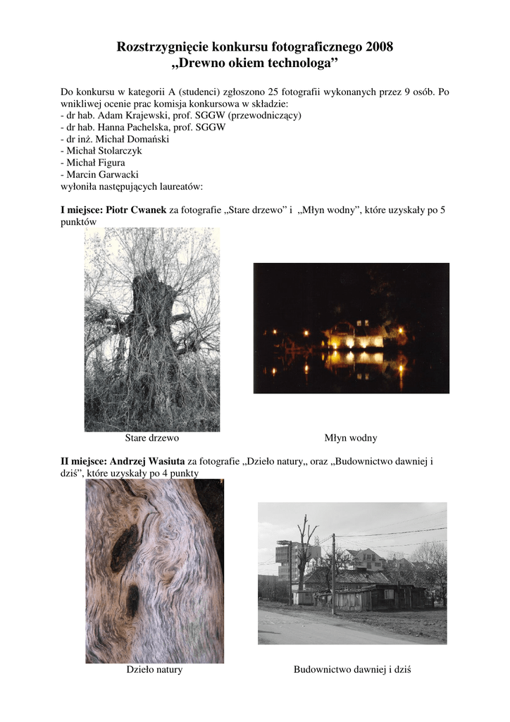 Rozstrzygnięcie konkursu fotograficznego 2008 „Drewno okiem