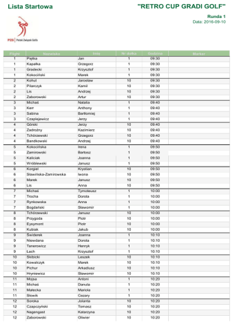 Lista Startowa ``RETRO CUP GRADI GOLF``