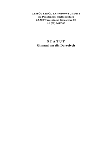 STATUT Gimnazjum dla Dorosłych - ZSZ Nr 2 we Wrześni