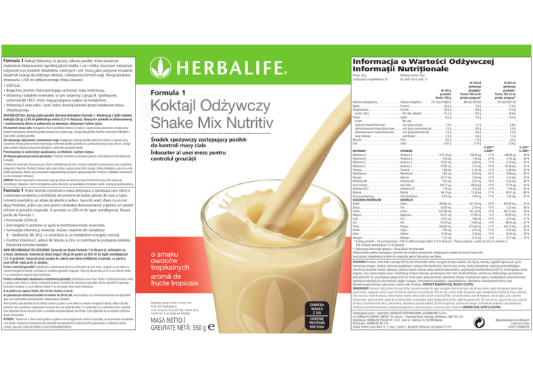 MOD RECOMANDAT DE UTILIZARE: Savuraţi un Shake Formula 1 în fiecare zi, echivalent cu
