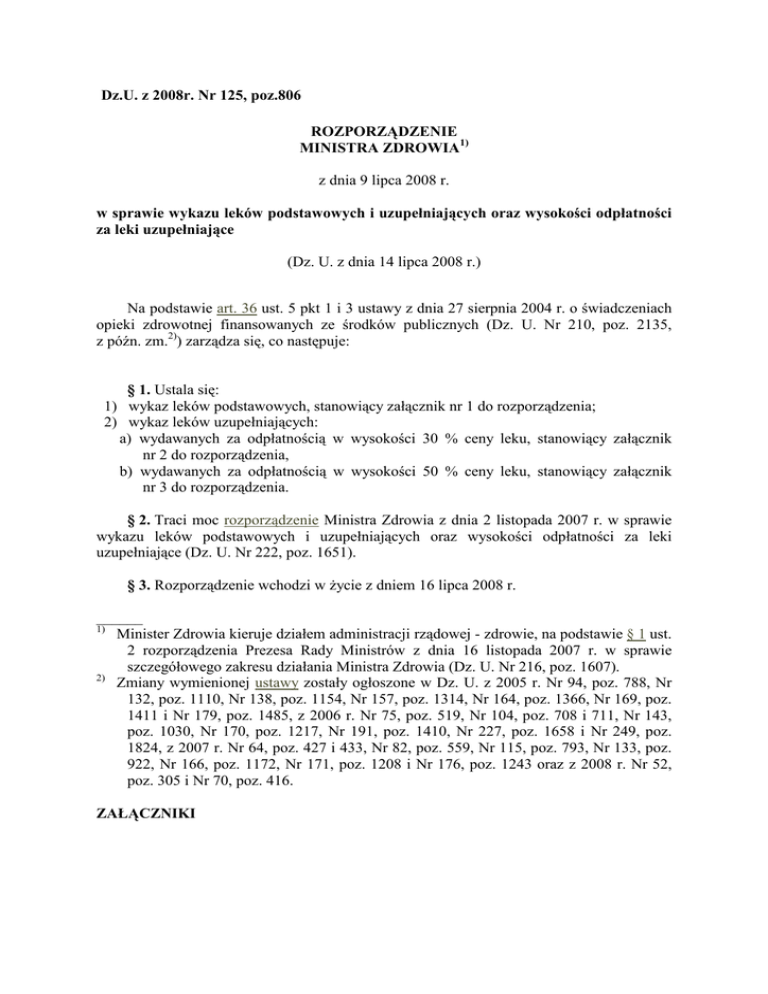 Dz.U. z 2008r. Nr 125, poz.806 ROZPORZĄDZENIE