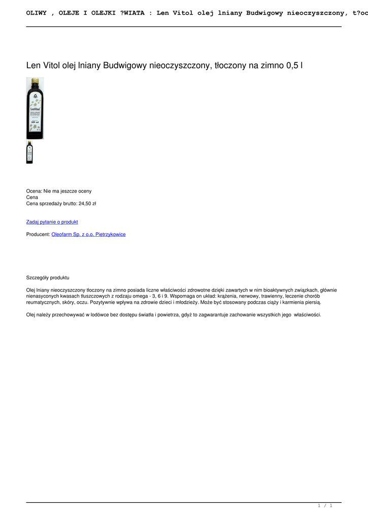 OLIWY , OLEJE I OLEJKI ŚWIATA : Len Vitol olej lniany Budwigowy