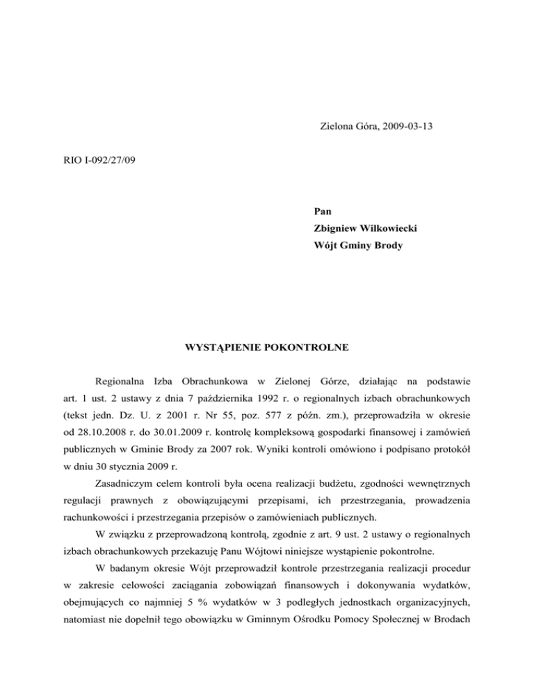 wystąpienie brody 2009 - Regionalnej Izby Obrachunkowej w