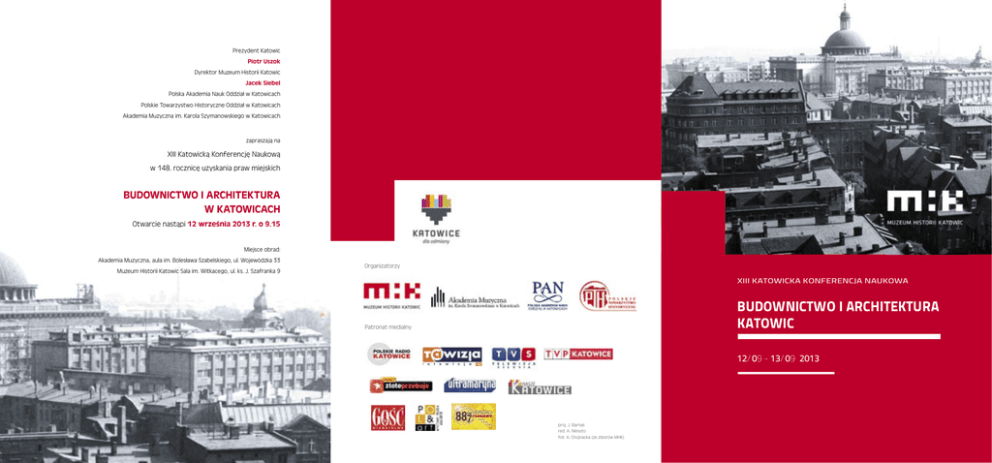 Prezydent Katowic Piotr Uszok Dyrektor Muzeum Historii Katowic Jacek Siebel Polska Akademia Nauk Oddział w Katowicach Polskie Towarzystwo Historyczne Oddział w Katowicach Akademia Muzyczna im. Karola Szymanowskiego w Katowicach zapraszają na XIII Katowicką Konferencję Naukową w 148. rocznicę uzyskania praw miejskich BUDOWNICTWO I ARCHITEKTURA W KATOWICACH Otwarcie nastąpi 12 września 2013 r. o 9.15 Miejsce obrad: Akademia Muzyczna, aula im. Bolesława Szabelskiego, ul. Wojewódzka 33 Muzeum Historii Katowic Sala im. Witkacego, ul. ks. J. Szafranka 9 Organizatorzy XIII KATOWICKA KONFERENCJA NAUKOWA BUDOWNICTWO I ARCHITEKTURA KATOWIC Patronat medialny 12/09 - 13/09 2013 proj. J. Barnaś red. A. Niesyto fot. A. Chojnacka (ze zbiorów MHK) Muzeum Historii Katowic, ul. ks. J. Szafranka 9 10.20–10.45 A R C H I T E K T U R A K A T O W IC I J E J P R Z E O B R A Ż E N I A 14.00–14.25 Mgr inż. arch. HENRYK BUSZKO: Katowice – miasto samorodne. Mgr RYSZARD SZOPA: Architektura kościoła pw. św. Józefa Robotnika w Katowicach-Józefowcu na tle architektury regionu i nie tylko. 10.45–11.10 Dr MACIEJ FIC: Od Warszawskiej 37 do Granicznej 32. Warunki lokalowe Instytutu Śląskiego i Śląskiego Instytutu Naukowego w Katowicach. Spojrzenie z zewnątrz i od wewnątrz. 12 września 2013 r. Akademia Muzyczna w Katowicach, ul. Wojewódzka 33 14.25–14.50 Dr inż. arch. ALEKSANDER FRANTA: Istota katowickiej moderny. 11.10 Dyskusja. 9.15 14.50–15.15 Dr ANETA BOROWIK: Innowacyjność architektury i urbanistyki 11.35 Przerwa. Uroczyste otwarcie konferencji. „Nowych Katowic” w latach 60. i 70. XX w. 9.30–9.55 ARCHITEKTURA OSIEDLI MIESZKALNYCH Prof. dr hab. EWA CHOJECKA: Przestrzenie i architektura Katowic jako miejsca wielorakich niespójnych pamięci. 15.15–15.40 Mgr ALICJA GZOWSKA: Katowicka lekcja postmodernizmu. Dyskusja panelowa: Zmysł innowatorski w architekturze Katowic z udziałem: Michała Buszka, Jerzego Forajtera, Jerzego Ilkosza, Tomasza Koniora, Jana Malickiego, Krystyny Siejnej, Jerzego Wyrozumskiego. Moderator: prof. dr hab. Ewa Chojecka. 15.40–16.05 Dr ALEKSANDRA SUMOROK: Śląskie wnętrza okresu Przerwa. 16.30–16.55 13.00–13.25 9.55 pszczyńskiego na przykładzie Murcek i Kostuchny. realizmu socjalistycznego. 16.05 13.25–13.50 Przerwa. Mgr PRZEMYSŁAW PIWOWARCZYK: Osiedla pracownicze koncernu Hermann Göring-Werke w Bogucicach. A R C H I T E K TU R A B U D Y N K Ó W U Ż Y T E C Z N O Ś C I P U B L I C Z N E J 13.50–14.15 12.00 Mgr PRZEMYSŁAW NADOLSKI: Kolonie urzędniczo-robotnicze księcia z perspektywy Bytomia w aspekcie sporu o prymat dwu ośrodków miejskich w Okręgu Przemysłowym na Górnym Śląsku w latach 1872–1939. 16.55–17.20 Dr inż. RYSZARD NAKONIECZNY: Między skromnością a wyrafinowaniem. Architektura budynków jednorodzinnych Katowic między 1945 r. a dniem dzisiejszym. Dr ZDZISŁAW JEDYNAK: Architektura instytucji kulturalnych Katowic 14.15–14.40 Dr JACEK KUREK, mgr ANNA PIONTEK: Domy i ludzie. 85 lat kolonii Mościckiego. 14.40 Przerwa. Dr hab. LECH KRZYŻANOWSKI: Zasoby infrastrukturalne międzywojennego wymiaru sprawiedliwości na polskim Górnym Śląsku, ze szczególnym uwzględnieniem Katowic. Varia 17.20–17.45 Mgr PIOTR RYGUS: Budynki administracyjne zarządów i banków w przestrzeni miejskiej Katowic i ich założenia architektoniczne (do 1939 r.). 15.10–15.35 Prof. dr hab. ZYGMUNT WOŹNICZKA: Warunki lokalowe mieszkańców Katowic na przełomie lat 40. i 50. XX w. 17.45–18.10 Mgr ANNA SYSKA: Architektura w służbie edukacji. Powojenne budynki katowickich szkół. 15.35–16.00 Dr AGATA BRYŁKA: Inskrypcje na budynkach mieszkalnych jako źródło do dziejów Katowic. 18.10 Dyskusja. 16.00–16.25 Mgr inż. arch. BOGUSŁAW MAŁUSECKI: Budowniczowie i mistrzowie murarscy z Katowic – członkowie Cechu Murarzy i Cieśli w Gliwicach. 13 września 2013 r. 9.30–9.55 Dr JAN LEWANDOWSKI: Willa Goldsteinów – pałac zmiennych czasów. 16.25 Dyskusja. 9.55–10.20 Prof. dr hab. BOGUSŁAW CZECHOWICZ: Praska paralela dla katowickiej katedry? 17.00 Zakończenie konferencji i podsumowanie.