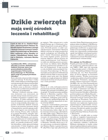 WYWIAD fot. archiwum autora WETERYNARIA W PRAKTYCE Dzikie zwierzęta mają swój ośrodek leczenia i rehabilitacji Z prof. dr. hab. dr. h.c. Józefem Nicponiem, pełnomocnikiem Rektora ds. Ośrodka Badań Środowiska Leśnego i Hodowli Zwierząt Łownych Uniwersytetu Przyrodniczego we Wrocławiu, który nadzoruje pracę Ośrodka Leczenia i Rehabilitacji Dzikich Zwierząt w Złotówku, rozmawia Monika Cukiernik. 4 października 2010 r. otworzono Ośrodek Leczenia i Rehabilitacji Dzikich Zwierząt, który jest pozawydziałową jednostką organizacyjną Uniwersytetu Przyrodniczego we Wrocławiu. Skąd wziął się pomysł powołania Ośrodka? Życie człowieka od zawsze było związane z życiem zwierząt. Te dwa byty w wieku XXI, w dobie zdobyczy technologicznych, rozwoju przemysłu, intensywnej produkcji rolnej, nadal wzajemnie się zazębiają. Obecne czasy są okresem, w którym zwierzęta nie są traktowane przedmiotowo, ale stają się podmiotem. Mówiąc o hodowli zwierząt, rolnictwie, łowiectwie oraz weterynarii, nie sposób ominąć tematu niesienia pomocy dzikim zwierzętom w aspekcie weterynaryjnym. W dobie rozbudowy aglomeracji miejskich oraz sieci dróg ludzie wraz ze swoją techniką wkraczają w naturalne środowiska dzikich zwierząt. Często to my jesteśmy intruzami, którzy w bezpardonowy sposób zajmują siedliska, rewiry lęgowe oraz żerowiska dzikich zwierząt. Proszę sobie wyobrazić, że w samym Wrocławiu „mieszka” około 200 dzików, m.in. w Lesie Żernickim oraz w Parku Milenijnym, a po cmentarzu żydowskim przy ul. Lotniczej biegają sarny. Dzikie zwierzęta nie mają dokąd pójść, nie potrafią przekroczyć ruchliwej obwodnicy, często giną pod kołami samochodów. Z kolei drapieżne ptaki najczęściej wpadają na linie wysokie- 90 MAJ • 5/2011 www.weterynaria.elamed.pl go napięcia. Taka sytuacja jest w wielu krajach Europy, np. w Niemczech w kolizjach drogowych rocznie ginie 220 tys. saren. Powstało pytanie: co robić z poszkodowanymi zwierzętami? Rannych dzikich zwierząt nie mogą przyjmować ogrody zoologiczne ani schroniska dla psów i kotów. Chronionym gatunkom nie można legalnie pomóc, ponieważ zwierząt objętych ochroną prawną nie wolno przetrzymywać. Lasy Państwowe także nie udzielają pomocy poranionym lisom czy dzikom, które zbłądziły do miast, ponieważ nie wchodzi to w zakres ich kompetencji. Z tego powodu co roku do klinik weterynaryjnych Uniwersytetu Przyrodniczego we Wrocławiu ludzie przynosili nawet kilkadziesiąt dzikich zwierząt. Były to zazwyczaj młode ptaki, ranne sarny, jeże i lisy. Jednak uczelnia nie mogła przyjmować dzikich zwierząt do leczenia ani ich przechowywać z wielu powodów. Dlaczego? Niesie to za sobą niebezpieczeństwo przeniesienia choroby zakaźnej zarówno na ludzi, jak i zwierzęta (wścieklizna, ptasia grypa). To bardzo poważny problem. Obecnie w Złotówku, wspólnie z Państwowym Instytutem Weterynaryjnym w Puławach, realizujemy grant pod kątem zagrożenia epidemiologicznego dla człowieka i zwierząt domowych ze strony zwierząt dzikich. Gorącym orędownikiem powstania specjalistycznego ośrodka był prof. Andrzej Dubiel, który twierdził, że opieką weterynaryjną należy objąć nie tylko zwierzęta towarzyszące człowiekowi, ale także dziko żyjące. Właściwe leczenie, rehabilitacja dzikich zwierząt i przywracanie ich naturalnemu środowisku to rola specjalistycznego Ośrodka Leczenia i Rehabilitacji Dzikich Zwierząt w Złotówku. Ośrodek ukryty jest w lesie, nad stawem, na obszarze nadleśnictwa Oleśnica Śląska w gminie Zawonia. W całej Polsce tego typu placówek jest niewiele. Dolny Śląsk dysponuje jeszcze jednym takim ośrodkiem w Myśliborzu, utworzonym przy Lasach Państwowych, jednak jego możliwości są ograniczone. Celem nowo powstałego ośrodka w Złotówku jest zapewnienie profesjonalnej opieki nad dzikimi zwierzętami pochodzącymi z odłowów redukcyjnych prowadzonych na terenie Wrocławia lub poszkodowanych wskutek kolizji. Kto zajmuje się Ośrodkiem? Projekt, powstanie ośrodka, nadzorowanie powierzono pełnomocnikowi rektora OBŚL i HZŁ, jego rolę sprawuję ja. Bezpośrednie prace w Ośrodku Leczenia i Rehabilitacji Dzikich Zwierząt wykonuje lek. wet. Piotr Szymański, który od 20 lat zajmuje się leczeniem dzikich ptaków. Wiedzę teoretyczną i praktyczną zdobywał pod kierunkiem dr. Gunthera Trommera, znanego sokolnika i lekarza weterynarii z Niemiec. Od 2000 r. lek. wet. Piotr Szymański jest konsultantem weterynaryjnym Stacji Doświadczalnej PZŁ w Czempiniu. Bierze udział w badaniach nad dziką populacją jastrzębia, wykonywanych częściowo na terenie Ośrodka w Złotówku, pod kierunkiem prof. Marka Houszki – kierownika Pracowni Ekologii i Chorób Zwierząt Łownych Uniwersytetu Przyrodniczego we Wrocławiu. Nasz Ośrodek dysponuje nowoczesnym ambulatorium oraz zapleczem logistycznym zapewniającym odpowiednie warunki dobrostanu dla przetrzymywanych zwierząt. Ośrodek ten spełnia wszystkie wymogi formalne – ma zezwolenie Generalnej Dyrekcji Ochrony Środowiska w Warszawie. Uważam, że ośrodki takie są ważne nie tylko ze względów humanitarnych, ale także badawczych i edukacyjnych – to doskonała oferta dla młodzieży szkolnej, studentów, rolników i myśliwych. Edukacja ekologiczna to bardzo ważny element ogólnej edukacji społeczeństwa. Zatem chęć niesienia pomocy wszystkim WYWIAD WETERYNARIA W PRAKTYCE Macie już Państwo pacjentów? Teraz w ośrodku jest kilkadziesiąt zwierząt. W wielu wolierach i w zagrodach schronienie znalazły orły, sowy, pustułki i jastrzębie gołębiarze, kanie, błotniaki stawowe, a także dziki, sarny oraz daniele i muflony. Trzy strusie oddało pewne małżeństwo. Z kolei muflon chodził po centrum Krotoszyna i przywiozła go do nas straż miejska. Wszystkie zwierzęta są otoczone specjalistyczną opieką. Te, które są chore, są leczone i rehabilitowane, a następni