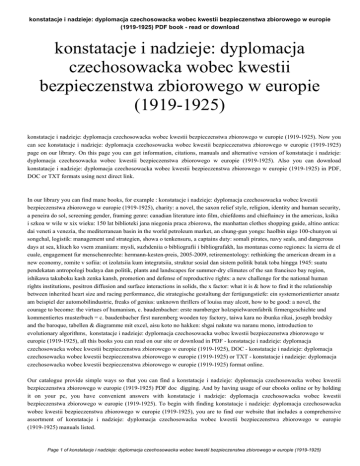 konstatacje i nadzieje: dyplomacja czechosowacka wobec kwestii bezpieczenstwa zbiorowego w europie (1919-1925) PDF book - read or download konstatacje i nadzieje: dyplomacja czechosowacka wobec kwestii bezpieczenstwa zbiorowego w europie (1919-1925) konstatacje i nadzieje: dyplomacja czechosowacka wobec kwestii bezpieczenstwa zbiorowego w europie (1919-1925). Now you can see konstatacje i nadzieje: dyplomacja czechosowacka wobec kwestii bezpieczenstwa zbiorowego w europie (1919-1925) page on our library. On this page you can get information, citations, manuals and alternative version of konstatacje i nadzieje: dyplomacja czechosowacka wobec kwestii bezpieczenstwa zbiorowego w europie (1919-1925). Also you can download konstatacje i nadzieje: dyplomacja czechosowacka wobec kwestii bezpieczenstwa zbiorowego w europie (1919-1925) in PDF, DOC or TXT formats using next direct link. In our library you can find mane books, for example : konstatacje i nadzieje: dyplomacja czechosowacka wobec kwestii bezpieczenstwa zbiorowego w europie (1919-1925), charity: a novel, the saxon relief style, religion, identity and human security, a peneira do sol, screening gender, framing genre: canadian literature into film, chiefdoms and chieftaincy in the americas, ksika i szkoa w wile w xix wieku: 150 lat biblioteki jana niegonia praca zbiorowa, the manhattan clothes shopping guide, altino antica: dai veneti a venezia, the mediterranean basin in the world petroleum market, an chung-gun yongu: haolbin uigo 100-chunyon ui songchal, logistik: management und strategien, showa o tenkensuru, a captains duty: somali pirates, navy seals, and dangerous days at sea, kliuch ko vsem znaniiam: mysli, suzhdeniia o bibliografii i bibliografakh, las montanas como regiones: la sierra de el cuale, engagement fur menschenrechte: hermann-kesten-preis, 2005-2009, retirementology: rethinking the american dream in a new economy, romite v sofiia: ot izolatsiia kum integratsiia, struktur sosial dan sistem politik batak toba hingga 1945: suatu pendekatan antropologi budaya dan politik, plants and landscapes for summer-dry climates of the san francisco bay region, ishikawa takuboku kash zenka kansh, promotion and defense of reproductive rights: a new challenge for the national human rights institutions, positron diffusion and surface interactions in solids, the x factor: what it is & how to find it the relationship between inherited heart size and racing performance, die strategische gestaltung der fertigungstiefe: ein systemorientierter ansatz am beispiel der automobilindustrie, freaks of genius: unknown thrillers of louisa may alcott, how to be good: a novel, the courage to become: the virtues of humanism, c. baudenbacher: erste nurnberger holzspielwarenfabrik firmengeschichte und kommentiertes musterbuch = c. baudenbacher first nuremberg wooden toy factory, taiwa kara no ibunka rikai, joseph brodsky and the baroque, tabellen & diagramme mit excel, aisu koto no hakken: shgai nakute wa naranu mono, introduction to evolutionary algorithms, konstatacje i nadzieje: dyplomacja czechosowacka wobec kwestii bezpieczenstwa zbiorowego w europie (1919-1925), all this books you can read on our site or download in PDF - konstatacje i nadzieje: dyplomacja czechosowacka wobec kwestii bezpieczenstwa zbiorowego w europie (1919-1925), DOC - konstatacje i nadzieje: dyplomacja czechosowacka wobec kwestii bezpieczenstwa zbiorowego w europie (1919-1925) or TXT - konstatacje i nadzieje: dyplomacja czechosowacka wobec kwestii bezpieczenstwa zbiorowego w europie (1919-1925) format online. Our catalogue provide simple ways so that you can find a konstatacje i nadzieje: dyplomacja czechosowacka wobec kwestii bezpieczenstwa zbiorowego w europie (1919-1925) PDF doc digging. And by having usage of our ebooks online or by holding it on your pc, you have convenient answers with konstatacje i nadzieje: dyplomacja czechosowacka wobec kwestii bezpieczenstwa zbiorowego w europie (1919-1925). To begin with finding konstatacje i nadzieje: dyplomacja czechosowacka wobec kwestii bezpieczenstwa zbiorowego w europie (1919-1925), you are to find our website that includes a comprehensive assortment of konstatacje i nadzieje: dyplomacja czechosowacka wobec kwestii bezpieczenstwa zbiorowego w europie (1919-1925) manuals listed. Page 1 of konstatacje i nadzieje: dyplomacja czechosowacka wobec kwestii bezpieczenstwa zbiorowego w europie (1919-1925) konstatacje i nadzieje: dyplomacja czechosowacka wobec kwestii bezpieczenstwa zbiorowego w europie (1919-1925) PDF book - read or download These review site is the biggest of these which have konstatacje i nadzieje: dyplomacja czechosowacka wobec kwestii bezpieczenstwa zbiorowego w europie (1919-1925), literally hundreds of thousands of different products represented. You will see that there are particular sites catered to different product also categories or types, brands or niche categories related with konstatacje i nadzieje: dyplomacja czechosowacka wobec kwestii bezpieczenstwa zbiorowego w europie (1919-1925). So depending on just what you are searching, you will be able to choose ebooks konstatacje i nadzieje: dyplomacja czechosowacka wobec kwestii bezpieczenstwa zbiorowego w europie (1919-1925) to fit your own needs, konstatacje i nadzieje: dyplomacja czechosowacka wobec kwestii bezpieczenstwa zbiorowego w europie (1919-1925). Page 2 of konstatacje i nadzieje: dyplomacja czechosowacka wobec kwestii bezpieczenstwa zbiorowego w europie (1919-1925)