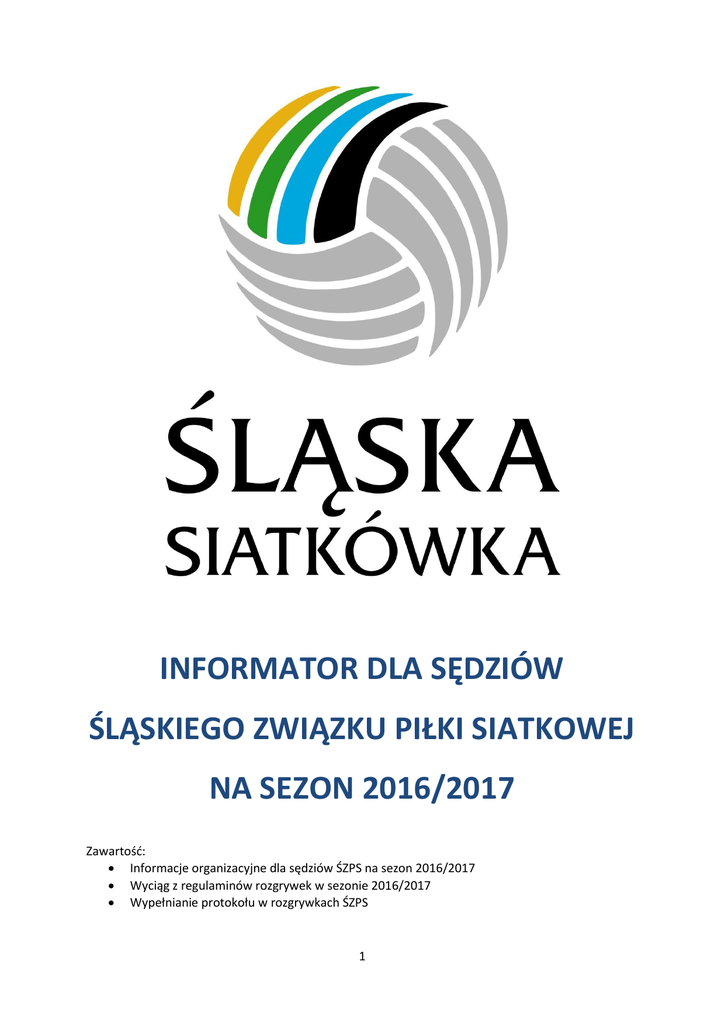 Informacje organizacyjne dla sędziów ŚZPS na sezon 2016/2017