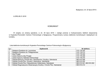 komunikat - Kujawsko - Pomorskie Centrum Pulmonologii w