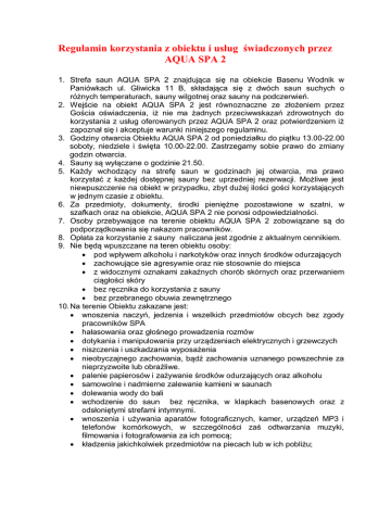 Regulamin AQUA SPA 2 - Aqua Spa / Paniówki