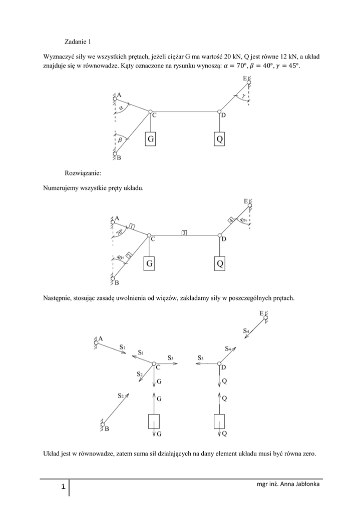Równowaga na płaszczyźnie - wyznaczanie sił w