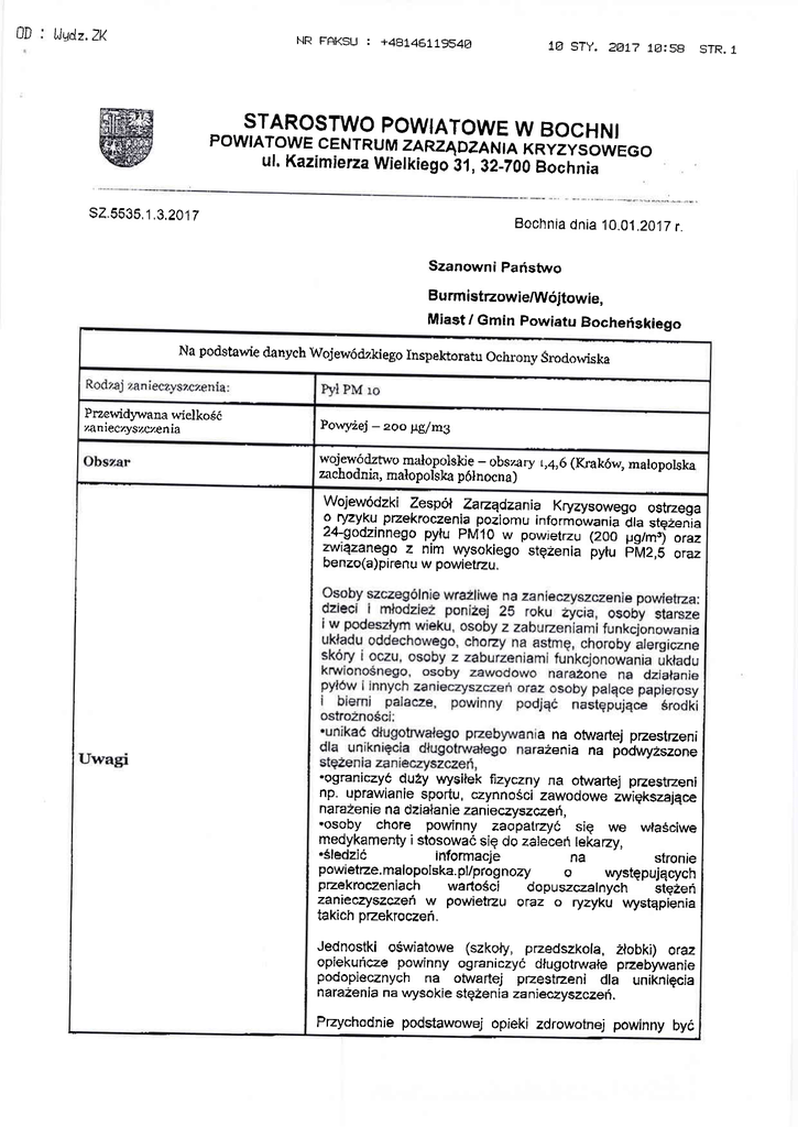 zanieczyszczeri w powietau otaz o ryzyku wystqpienia